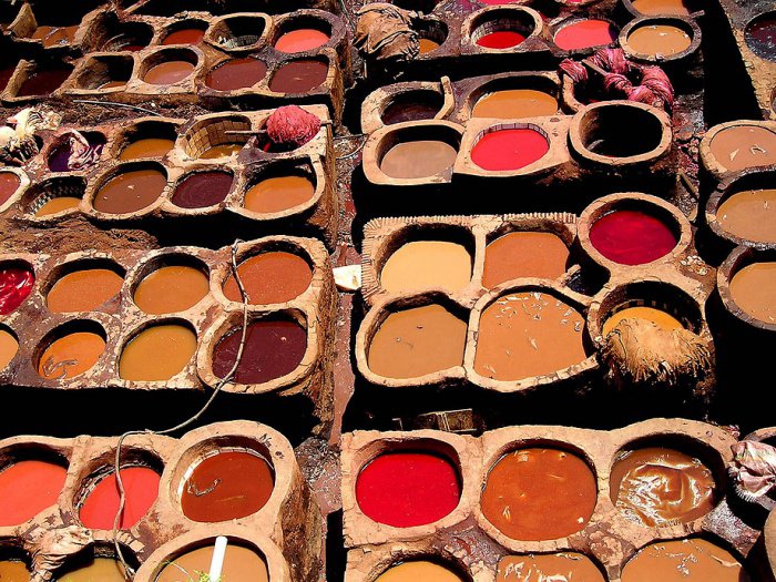 Марокко Фез қаласында теріні бояуға арналған әйгілі құмыралар.