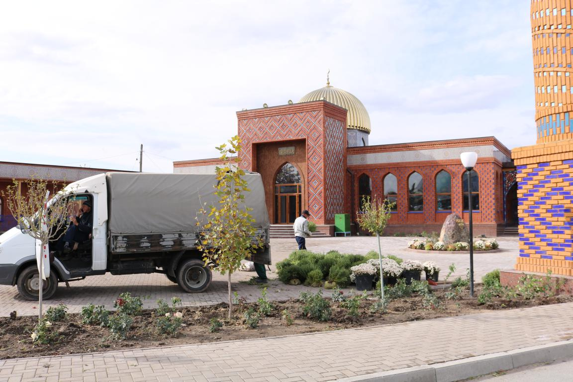 Тараз қалалық орталық «Әулие ата» мешіті ауласына гүл отырғызылды. Мешіт маңын әсемдеу үшін демеушілік көмек арқылы 911 600 теңге қаражат жұмсалды. Жұмсалған қаражатқа 300 дана-раушан гүлі, 300 дана-хризантема гүлі, 120 дана-қызғалдақ гүлдері мен шырша ағаштары және т.б. гүлдер егілді.