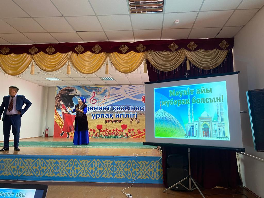 «Тұрғани» мешітінің имамы Каримов Рахматулла мен «Айша-бибі» ауылдық мешітінің имамы Қатарбай Таджибаев Пайғамбарымызға (с.ғ.с.) салауат айтып, «Мәуліт» оқыды. Иә, Пайғамбарымыздың (с.ғ.с.) дүниеге келуі Ұлы Жаратушының ғаламға сыйлаған ең үлкен нығметі мен жақсылығы екені сөзсіз. Құранда: «Біз сені күллі ғалам үшін рахым етіп қана жібердік»,-деп осы ақиқатты меңзеген. Сондықтан, оның дүниеге келіп, ғаламды нұрға бөлеуі – артына ерген үмметі үшін үлкен қуаныш.