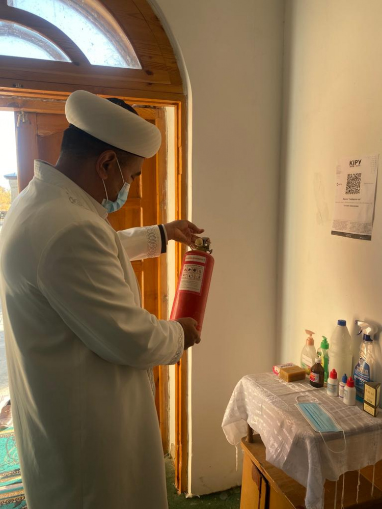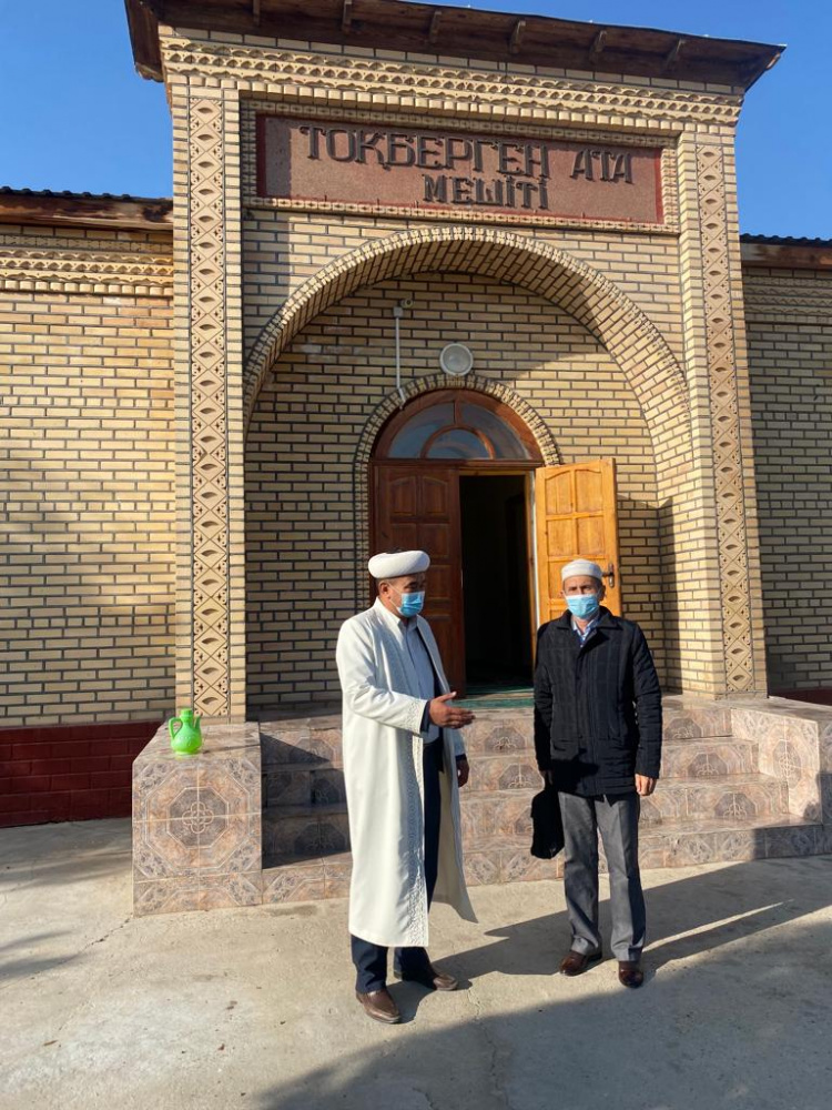 Жамбыл ауданының бас имамы Ғайырфулла Қуанышбекұлы ауыл мешіттерінің қыстық дайындықтарын көріп, мешіттің жылуы, ішкі-сыртқы тазалықтарын арнайы аралады. Мешіттің жанында «өрт қалқаны» қойылу керектігі имамдармен жиналыс кезінде тапсырылған болатын. Осыған орай, Айша-бибі, Тұрғани, Ботабай, Бесағаш, Тоқберген ата мешіттерінде қойылған. Оларды аралап көрген аудан имамы жуық арада барлық мешіттерге қойылу керектігін тапсырды.