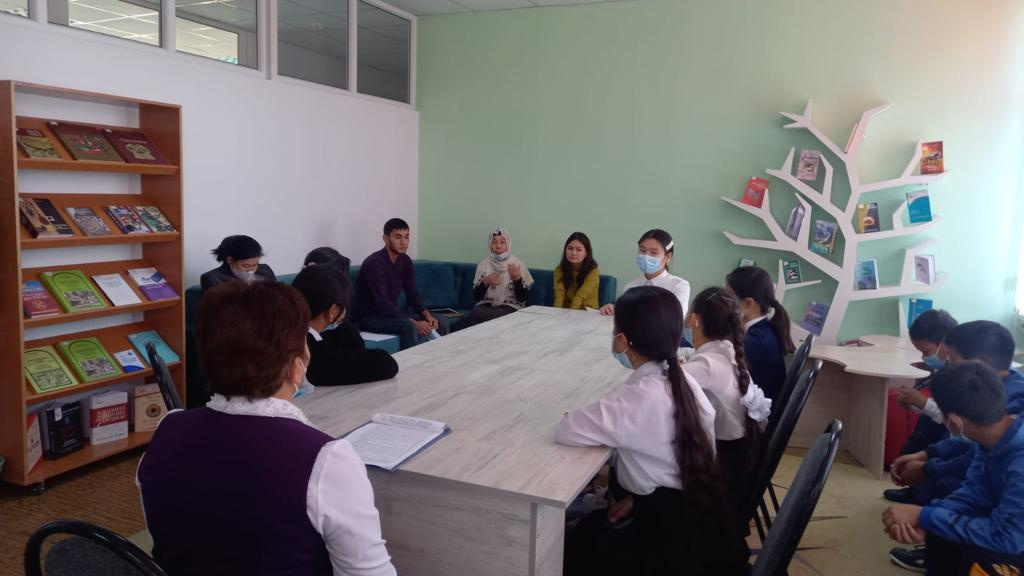 Жамбыл ауданы орталық кітапханасында аудандық «Бәйдібек» мешітінің теолог-ұстазы Жайна Бекназарованың қатысуымен мектеп оқушыларының арналған «Экстремизм мен терроризм – ғасыр індеті» сұқбат-әңгіме өтті.