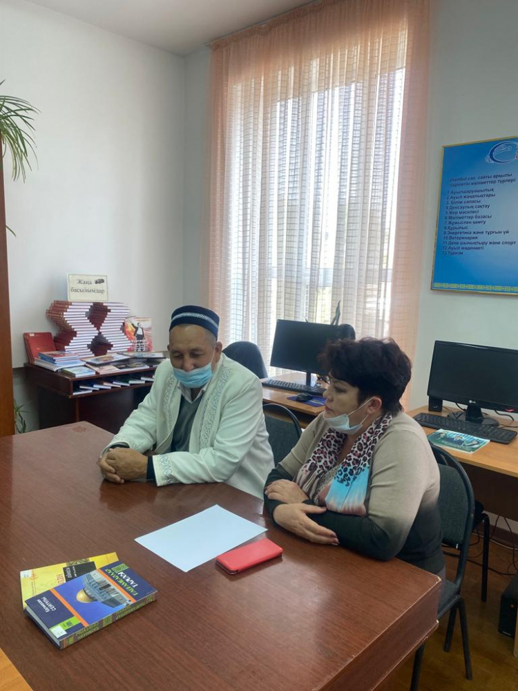 Жамбыл ауданы Қызылдихан ауылдық кітапханасында «Махат ата» мешітінің имамы Ескендір Чалиев жастарға «Дін және дәстүр» жайында кеңінен насихат жұмыстарын жүргізді.