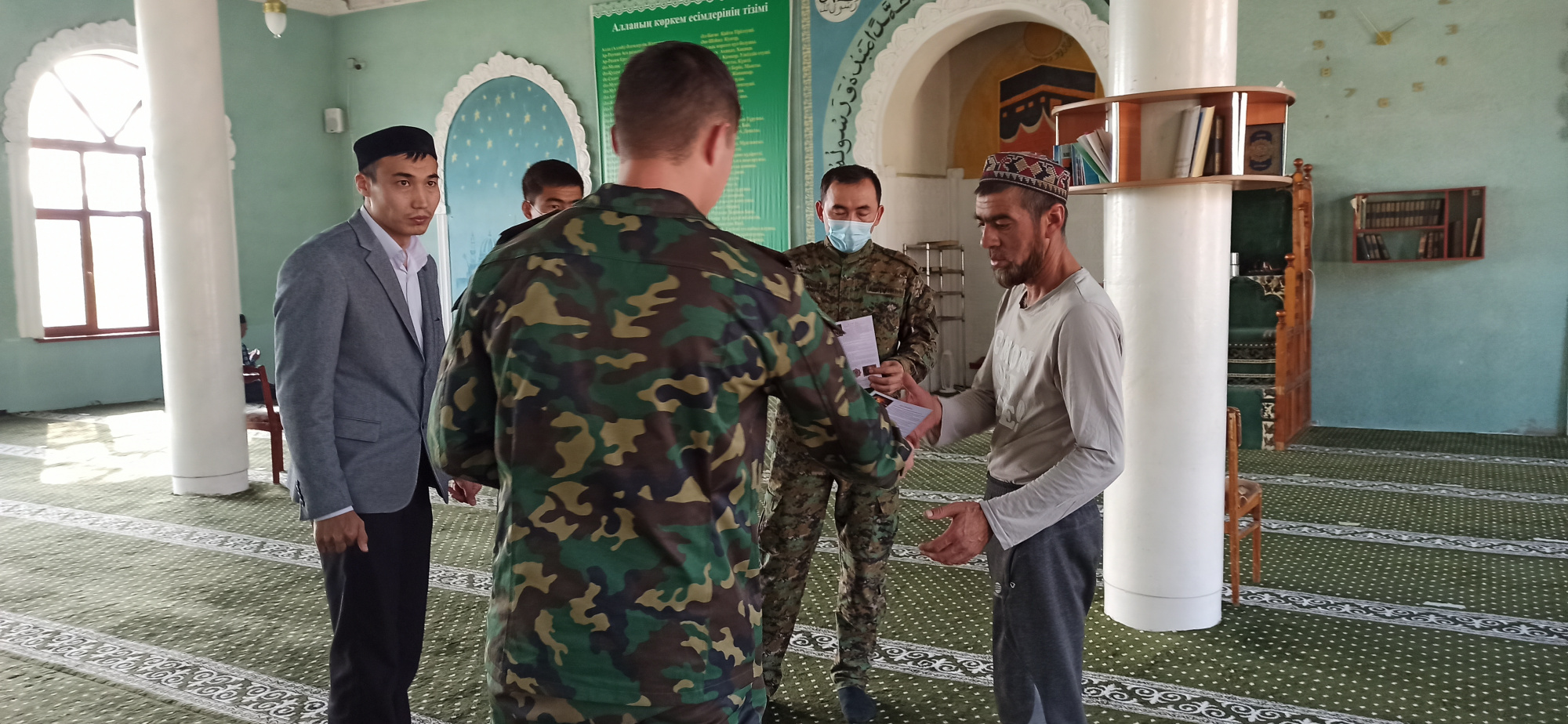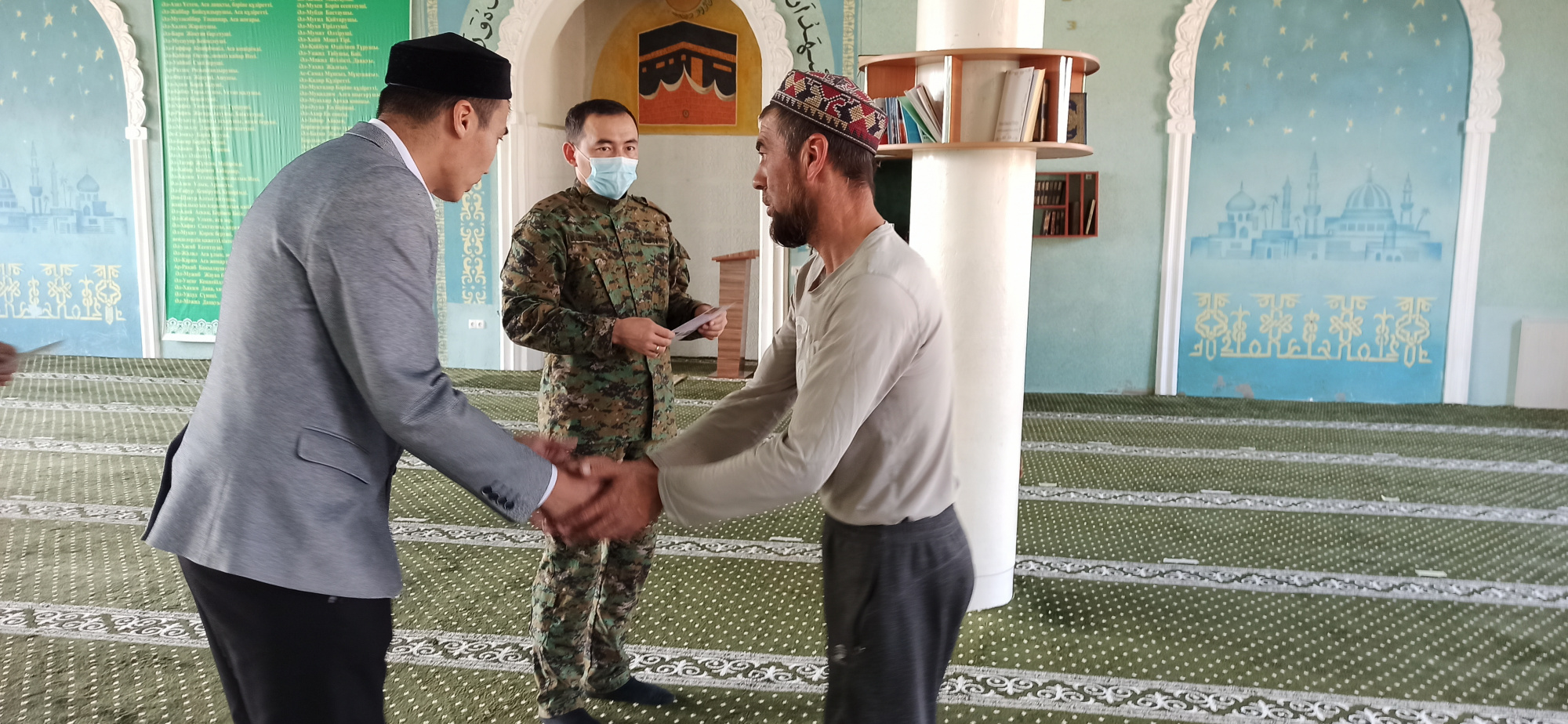 ҚМДБ-ның Жамбыл облысы бойынша бас имамы Бейбіт Мырзагелдиевтің тапсырмасына сәйкес, Меркі ауданы орталық «Меркі ата» мешітінің бас имамы Қанат Талғатұлының ұйымдастыруымен мешіт жамағаттарына өрт қауіпсіздігін түсіндіру жұмыстары жүргізілді.