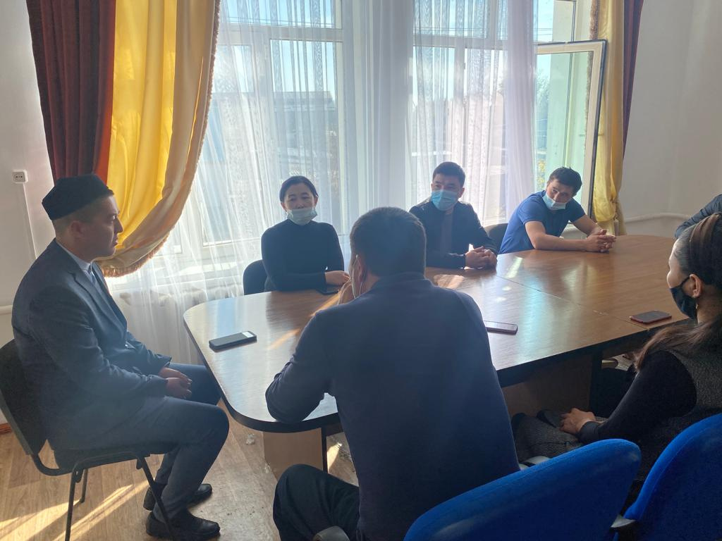 Жамбыл ауданы орталық Жастар орталығында Айша-бибі ауылы «Айша-бибі» мешітінің имамы Таджибаев Қатарбай жастарға «Дін және дәстүр» деген тақырыпта насихат жұмыстарын жүргізді.