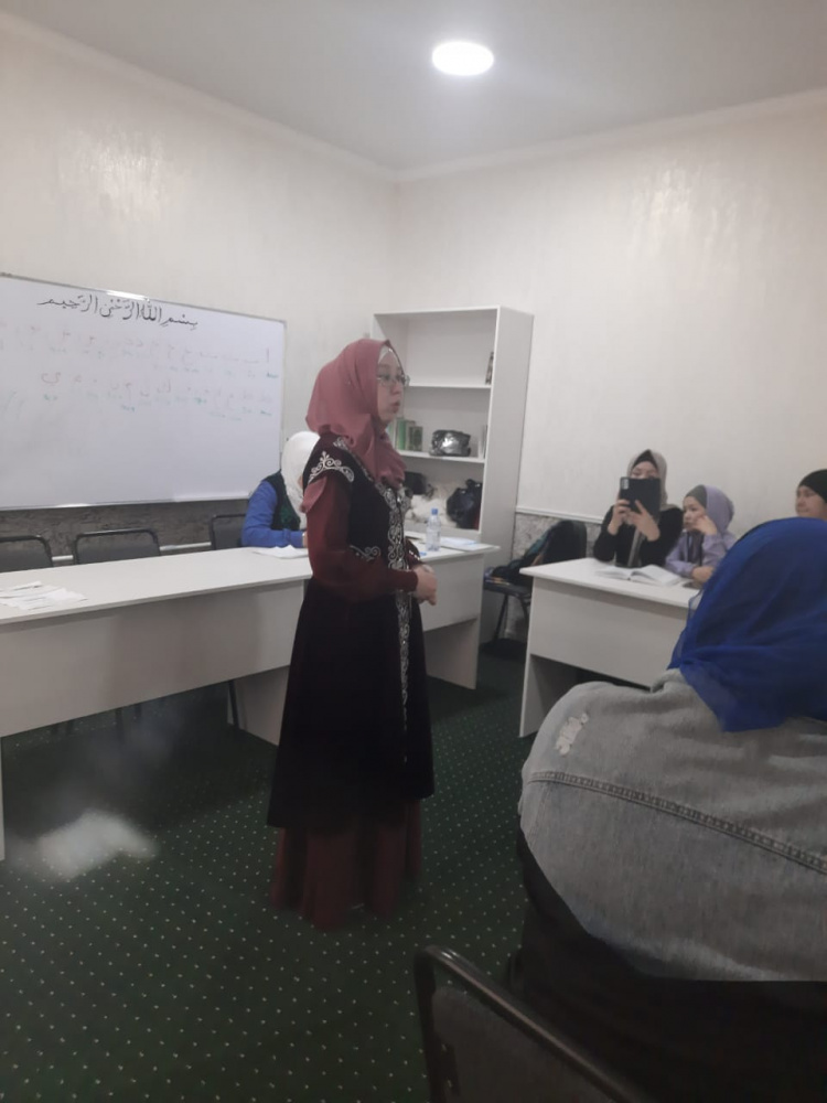 Сөз алған ҚМДБ «Әйел-қыздар» секторының Жамбыл облысындағы жауапты өкілі Гүлжан Серікқызы шәкірттерге ең ізгі лебізін арнады. Мешіттердің әйел жамағатын ауызбіршілікке шақырып, әсіресе, өмір тәжірибесі мол қазыналы қарияларымызды түрлі тақырыптық іс-шараларға белсенді түрде атсалысып, жастарға үлгі-өнеге көрсетуге үндеді.