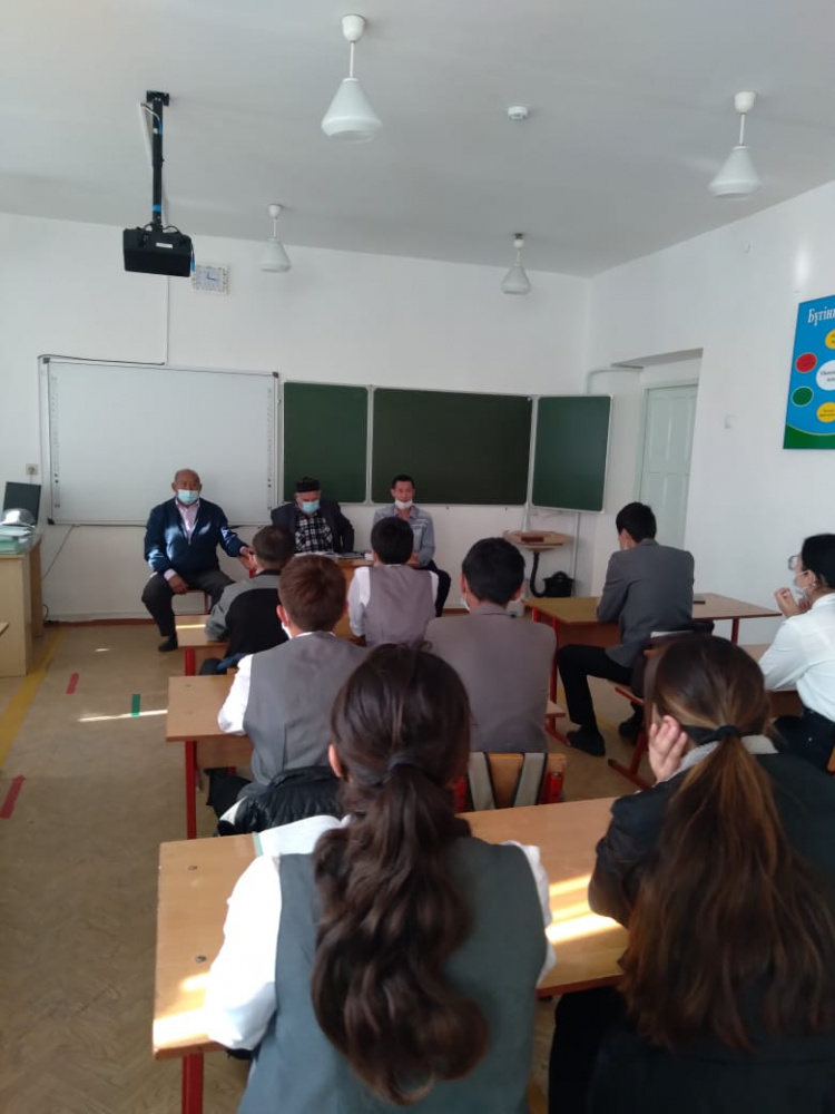 Қоғамға қатер төндіретін, қан төгуге үндейтін кез келген насихат Ислам дініне қайшы екенін айтқан ауыл имамы радикалды діни көзқарастың қоғамға тигізер әсері мен зардаптарын түсіндірді. Сондай-ақ жиынға қатысқан жоғары сынып оқушыларының сұрақтарына жауап берілді.