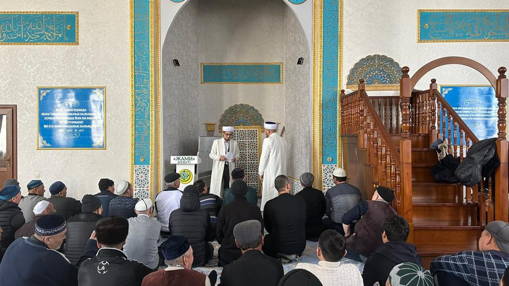 Аталған мешіттің наиб имамы хатым дұғасын жасап, көпшілік бірлесе дұға етті. Түркия, Сирия елінде зілзаладан зардап шеккен халыққа Алланың жәрдемін тілеп, отбасыларымен қауыштыру сұралды. Қаза болғандарды Алладан мейіріміне ал деп дұға етілді.