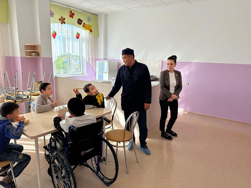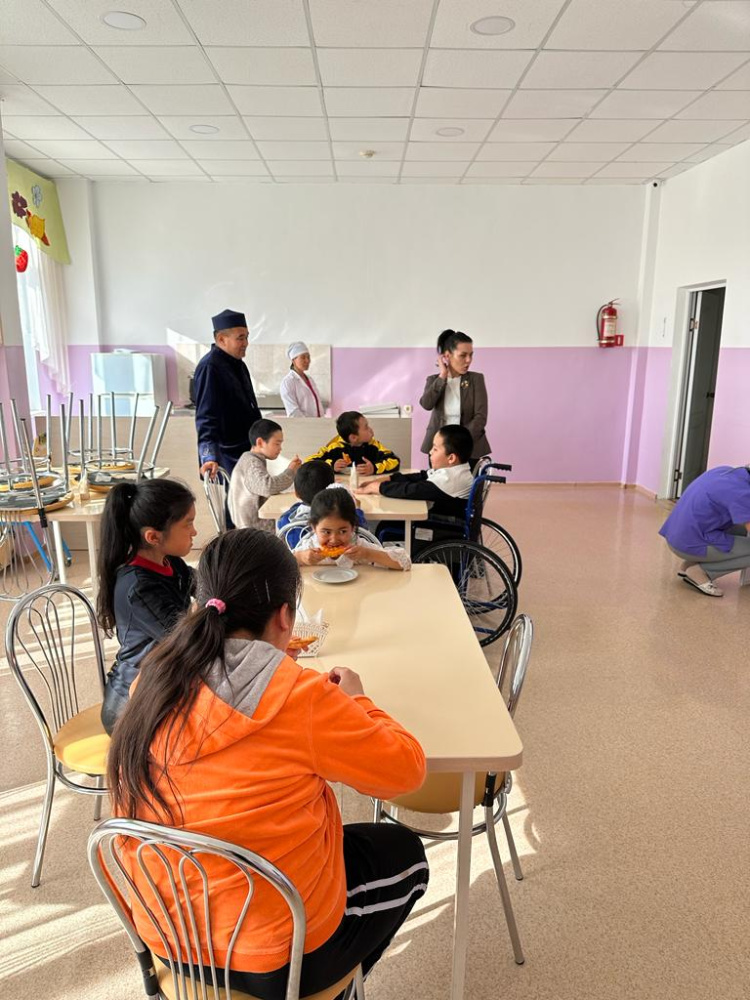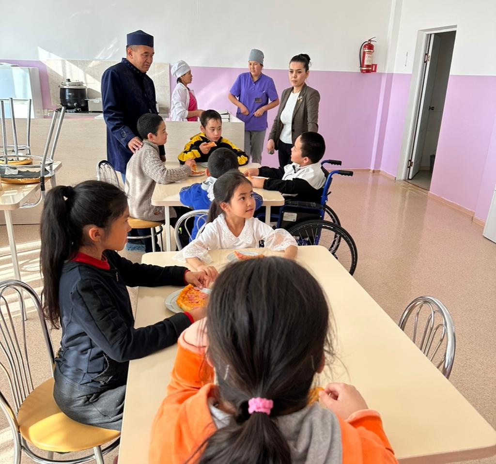 Жамбыл ауданы орталық «Бәйдібек» мешітінің бас имамы Ғайырфулла Қуанышбекұлы қасиетті Ораза айт мейрамы қарсаныңда "Жамбыл облыстық мүгедек балаларды оңалту және бейімдеу орталығы" КММ филиалы директордың міндетін атқарушы Тұяқбаева Индира Дәулетбекқызының рұқсатымен денсаулығы жоқ бүлдіршіндерге базарлық тартты.
