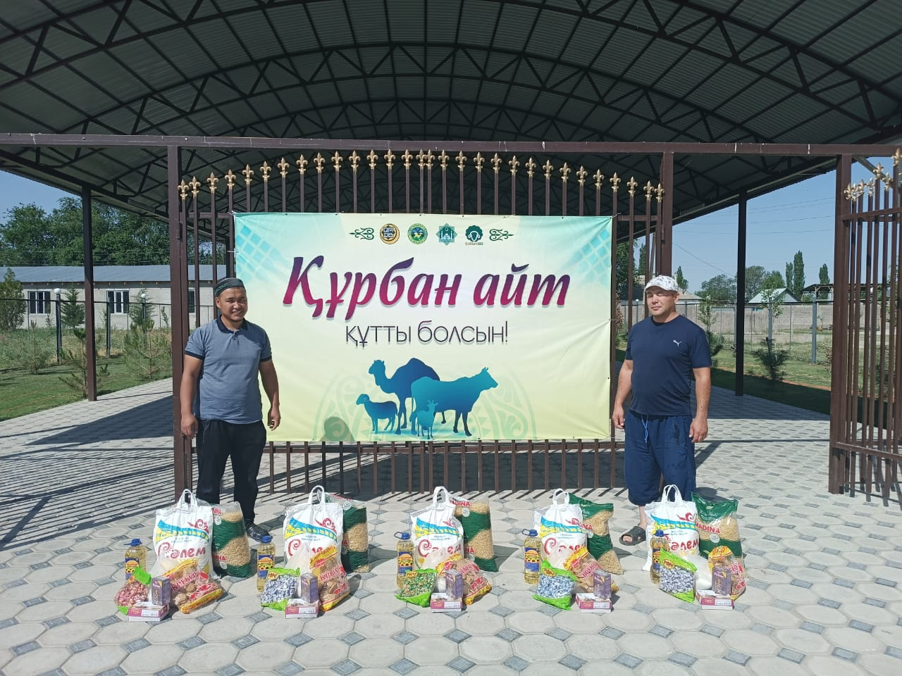 Меркі ауданы, Қызылқыстақ ауылы «Әл-Кәрим» мешітінің жамағаты «Құрбан айт» мейрамы қарсаңында айттық дастархан үлестірді.