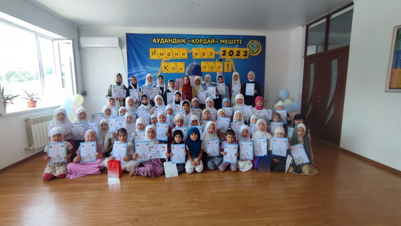 Қордай аудандық мешітінде "Имани жаз - 2023" сауат ашу курсы өз мәресіне жетті. Аудандық мешітте 1 айда 70 ұл 80 қыз баласы діни сауатын ашты.