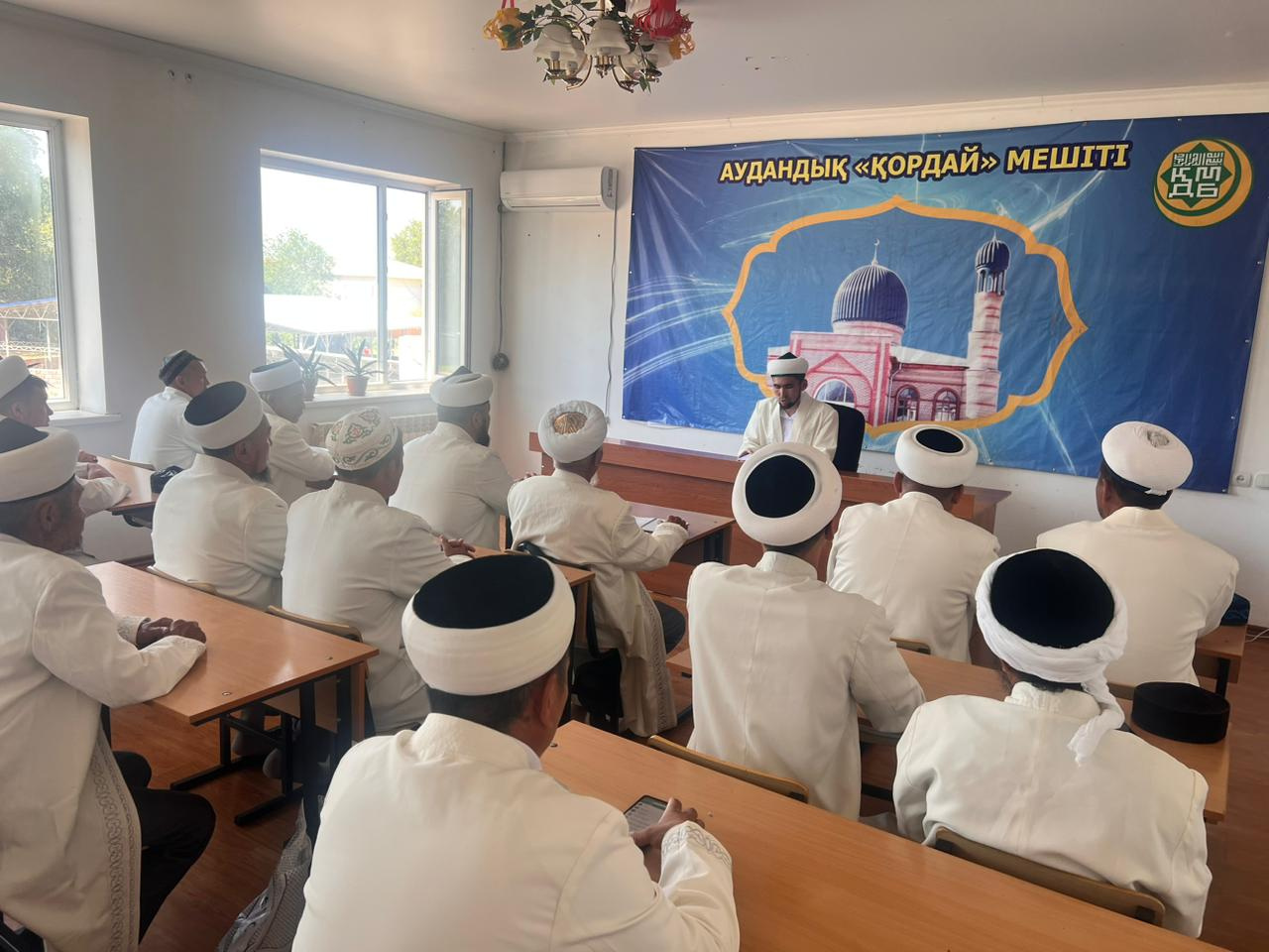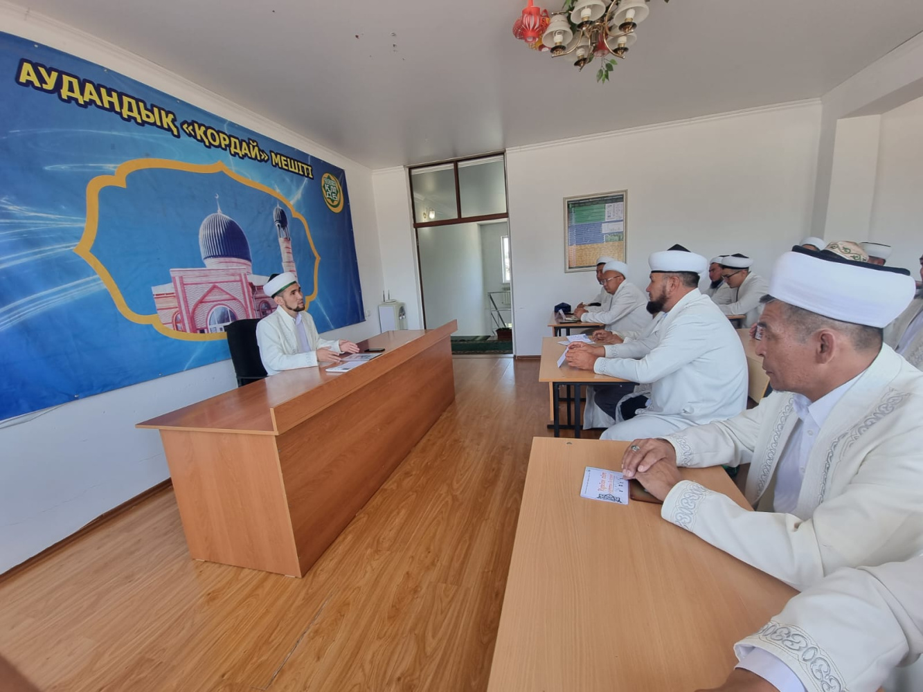 "Қордай" аудандық мешітінде аудан бас имамы Әлімұхаммед Егізбаев бастаған өңір имамдарының жиналысы өтті.