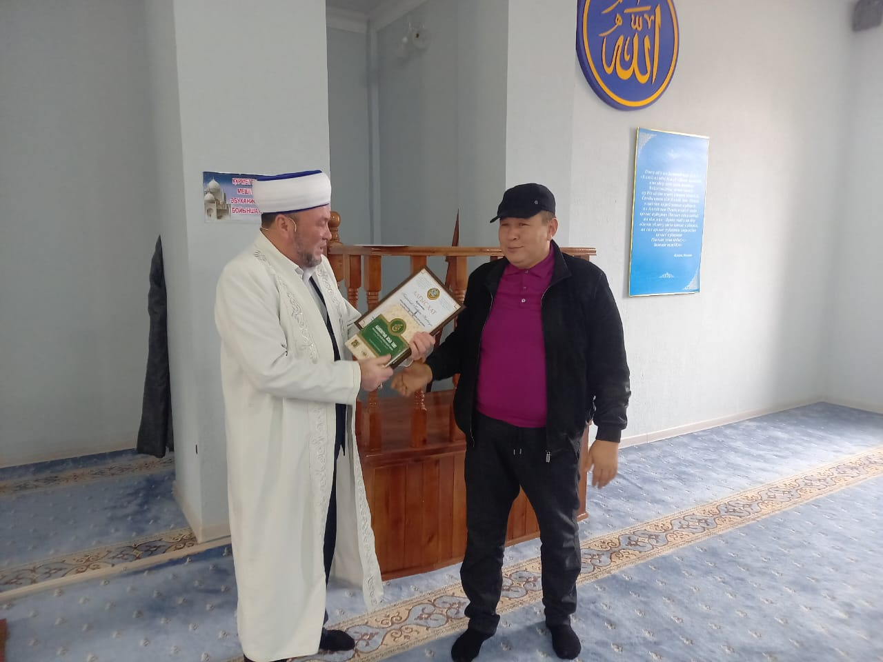 Осы уақытқа дейін мешітке шын жүректеріменең қызымет етіп жүрген азаматтарға имам көпшілік алдында арнайы сыйлықтар табыстап, мерекемен құттықтап, алғысын білдірді.
