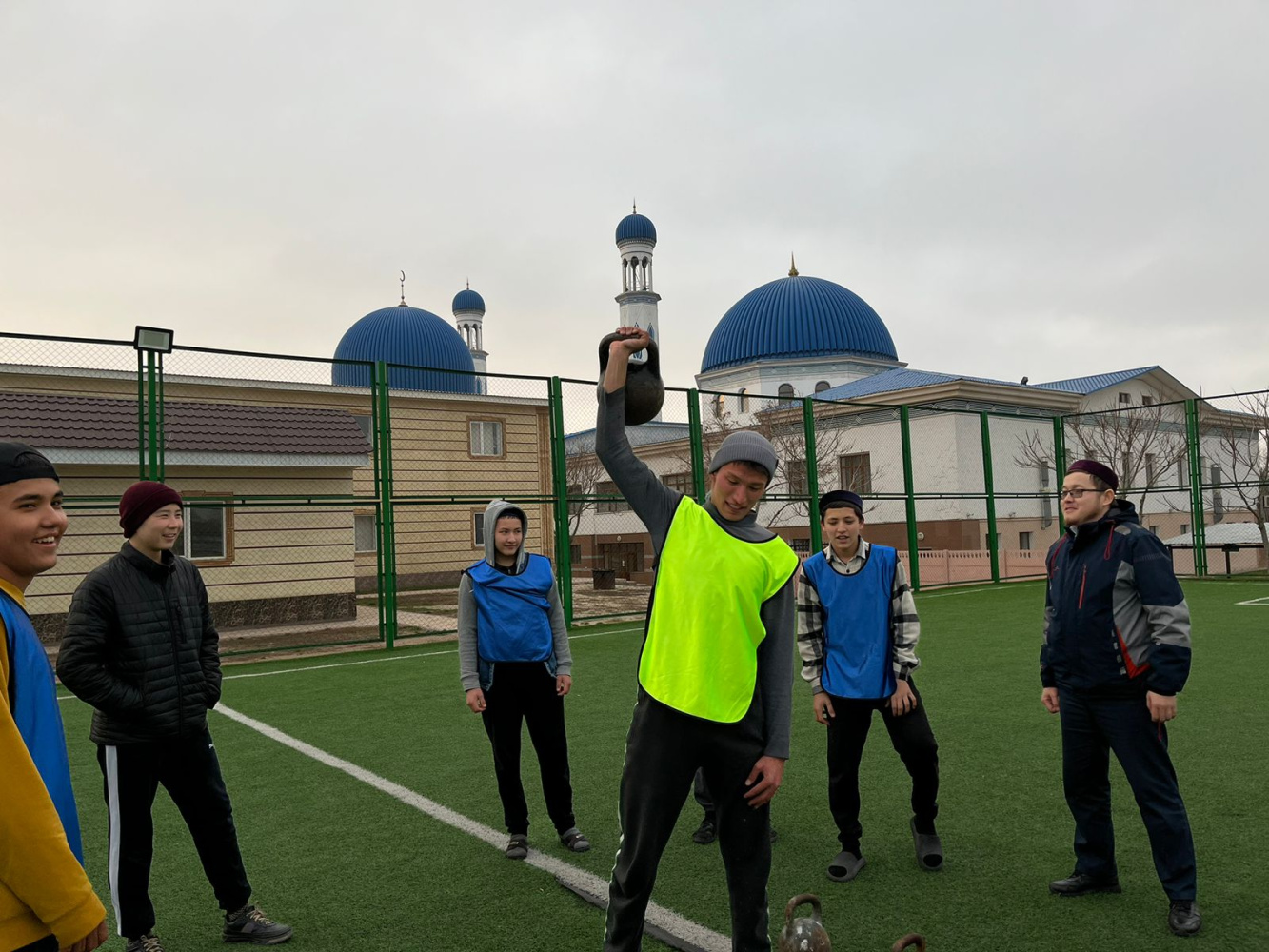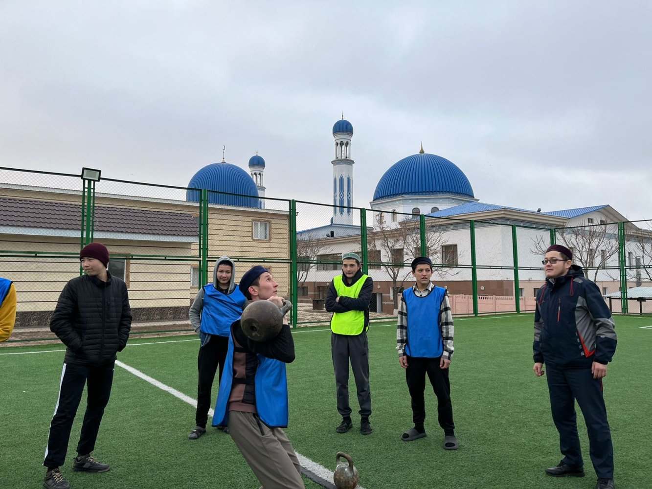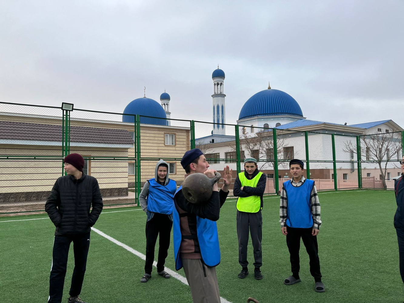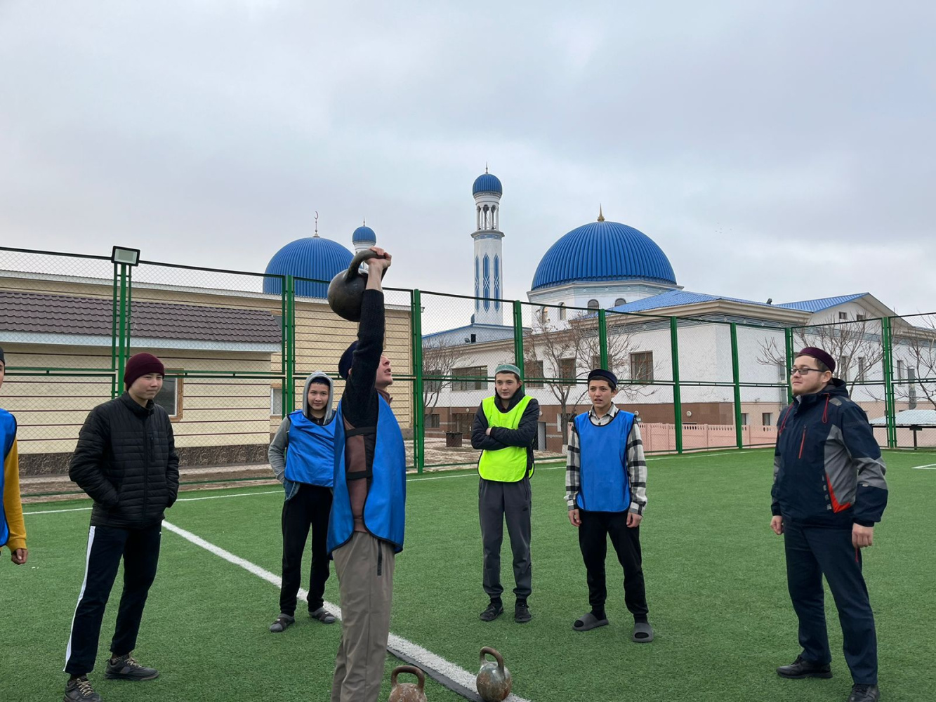 Гір тасын көтеру сайысы бойынша "Һибатулла Тарази" медресесінің студенттері күш сынасып, ең көп гір көтерген палуан анықталды.