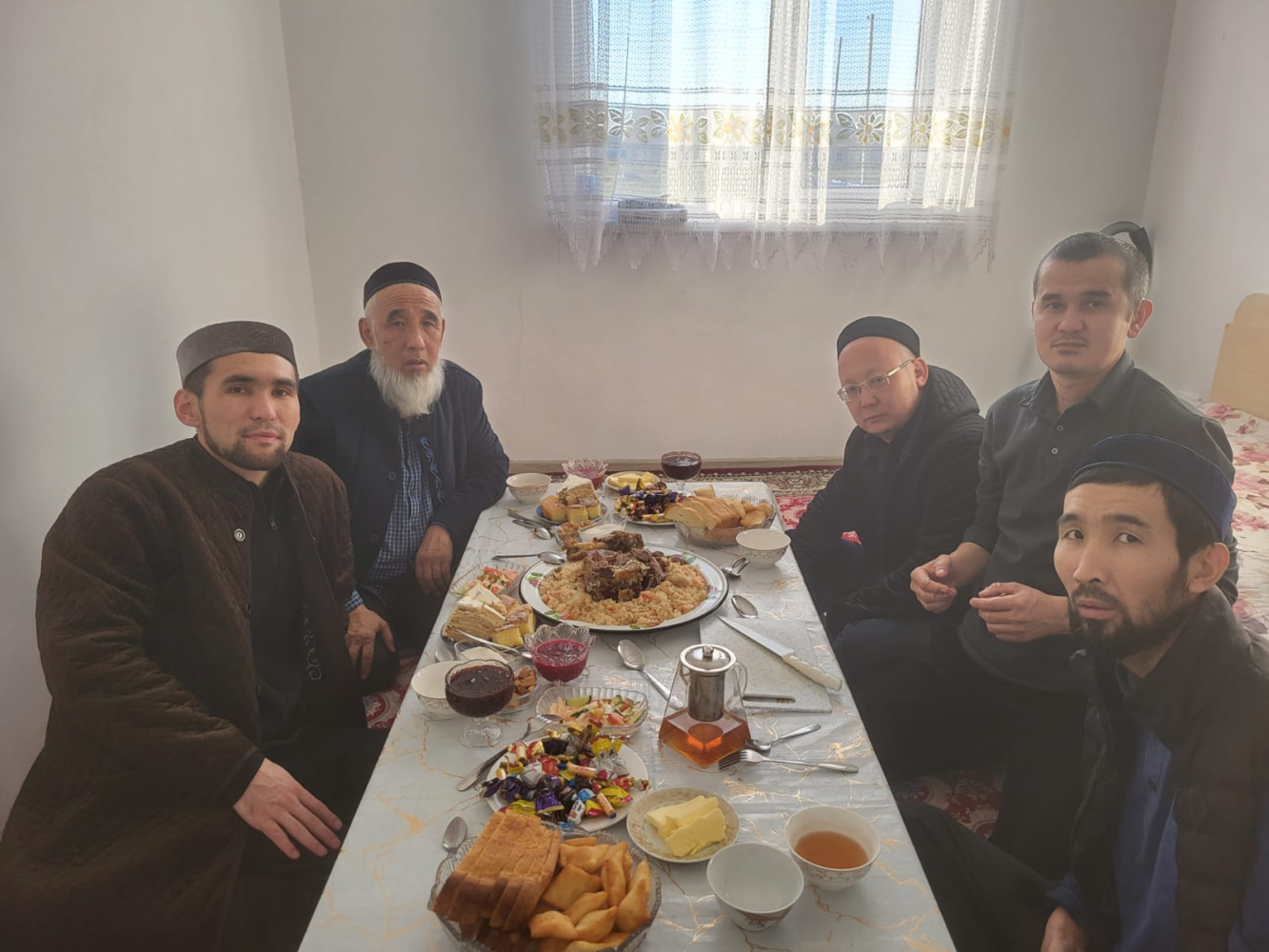 Науқастың көңілін сұрап барған ауданның бас имамы және Әлжан ана ауылының имамы мен Сортөбе ауылындағы «Хамид бин Бадый» мешітінің имамы, имамдар аманатын табыстады.