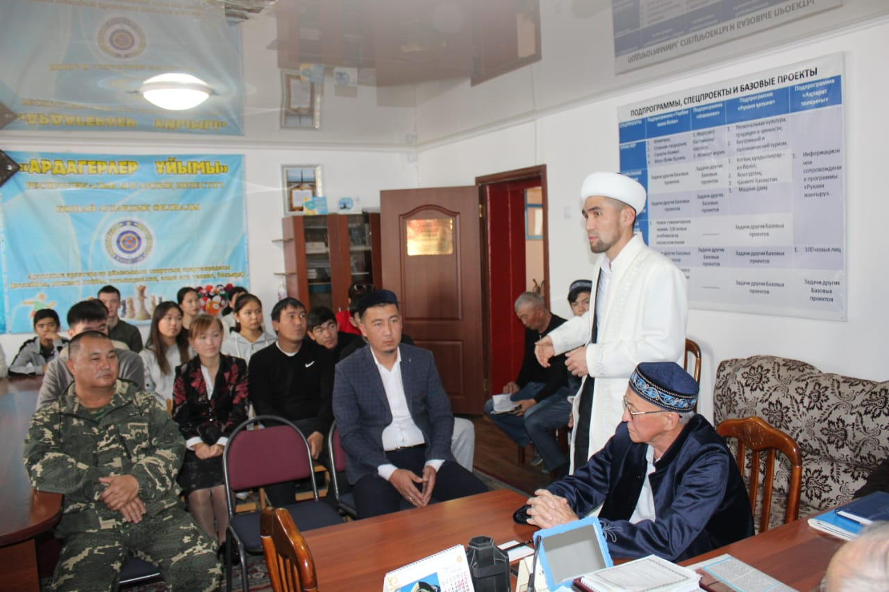 Қордай аудандық ардагерлер үйінде аудандық ардагерлер алқасының төрағасы Әлімбет Біржан Әбдікерімұлының бастауымен ауылдағы жастар мен колледж студенттеріне «Дінің тұрсын дін аман!» тақырыбында семинар болып өтті. Семинар да ауданның бас имамы А.А.Егизбаев «Жат ағым жарға жығады!» тақырыбында насихат жүргізді. Жастарға жат ағымнан сақ болуымыз үшін 4 нәрсе ресми (ресми кітап, ресми орын, ресми адам, ресми әлеуметтік желі) болатын болса адаспайтындығымызды жеткізді.