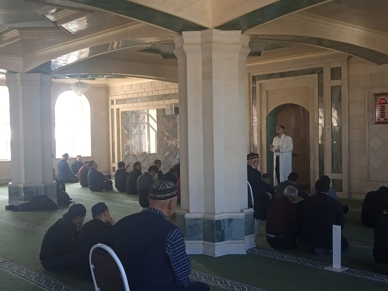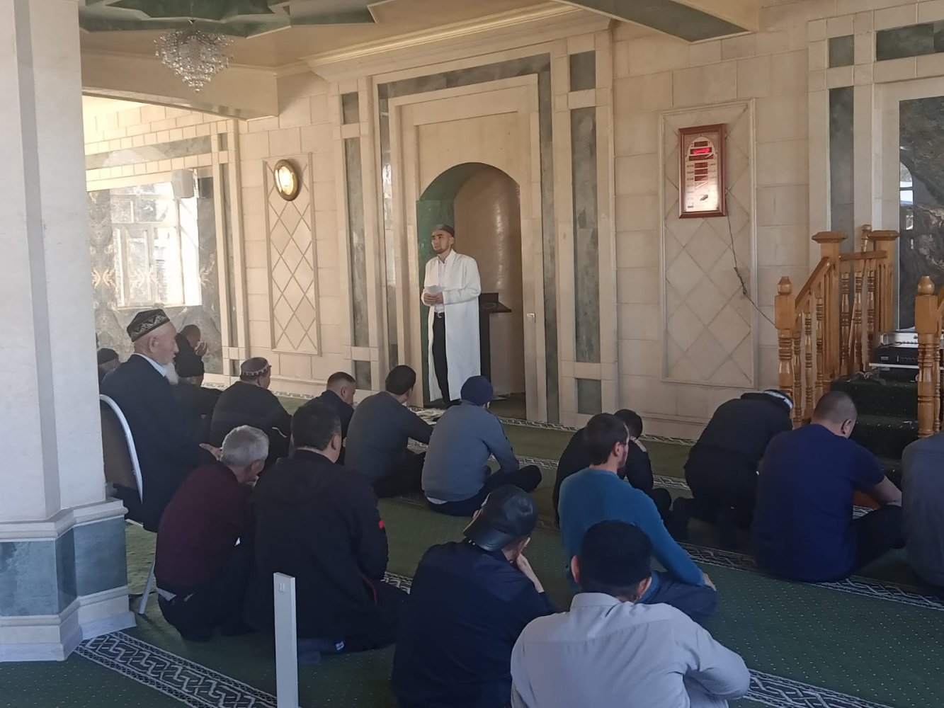 Ауданның бас имамы А.А.Егизбаев жиналған жамағатқа дәріс оқып, сұрақтарына жауап берді. Сонымен қоса ҚМДБ-ның Шариғат және пәтуа бөлімі тарапынан жарық көрген үш томдық «Пәтуалар жинағы» кітабы таныстырылды.