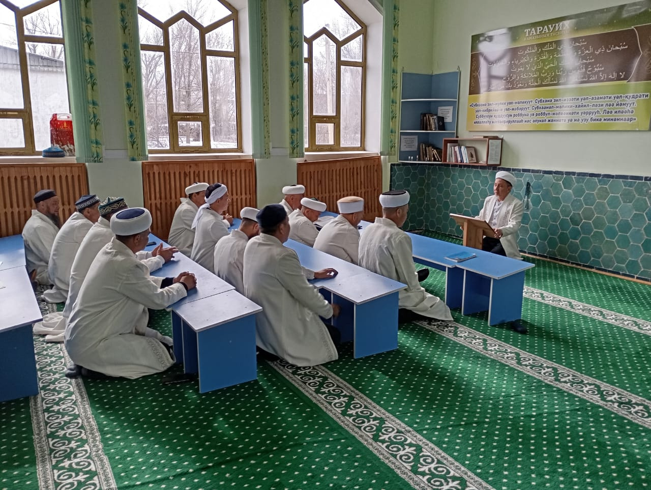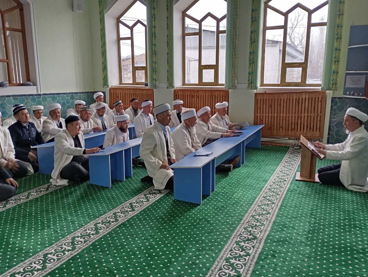 Жуалды аудандық ортадық "Толымбай тегі Зиябек" мешітінде бас имамы Қабылбекұлы Ғалымжанның ұйымдастыруымен аудан имамдарының жиналысы өтті. Жиынға аудан мешіттерінің барлық имамдары қатысып, маңызды мәселелер талқыланды.