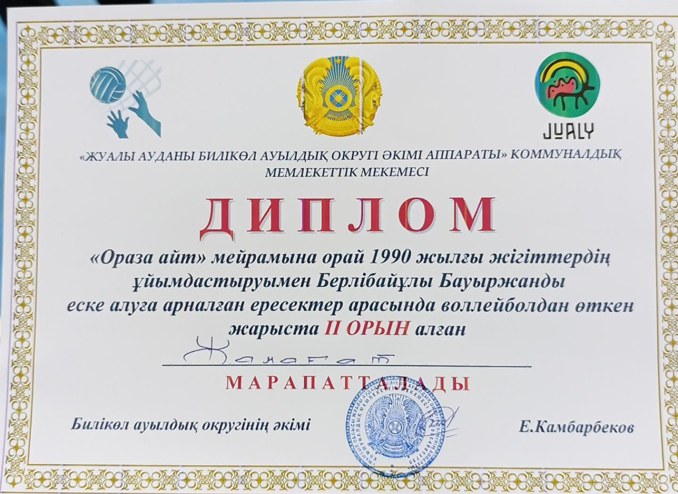 Аталған жарысты 1990 жылғы ауыл азаматтары Берлібайұлы Бауыржанды еске алуға арнап өткізді. Ересектер арасында өткен турнирде тартысты ойындар өрбіді. Нәтижесінде «Билікөл» мешітінің жамағаттары үздік ойын көрсетіп, жүлделі 2-орынды қанжығасына байлады.