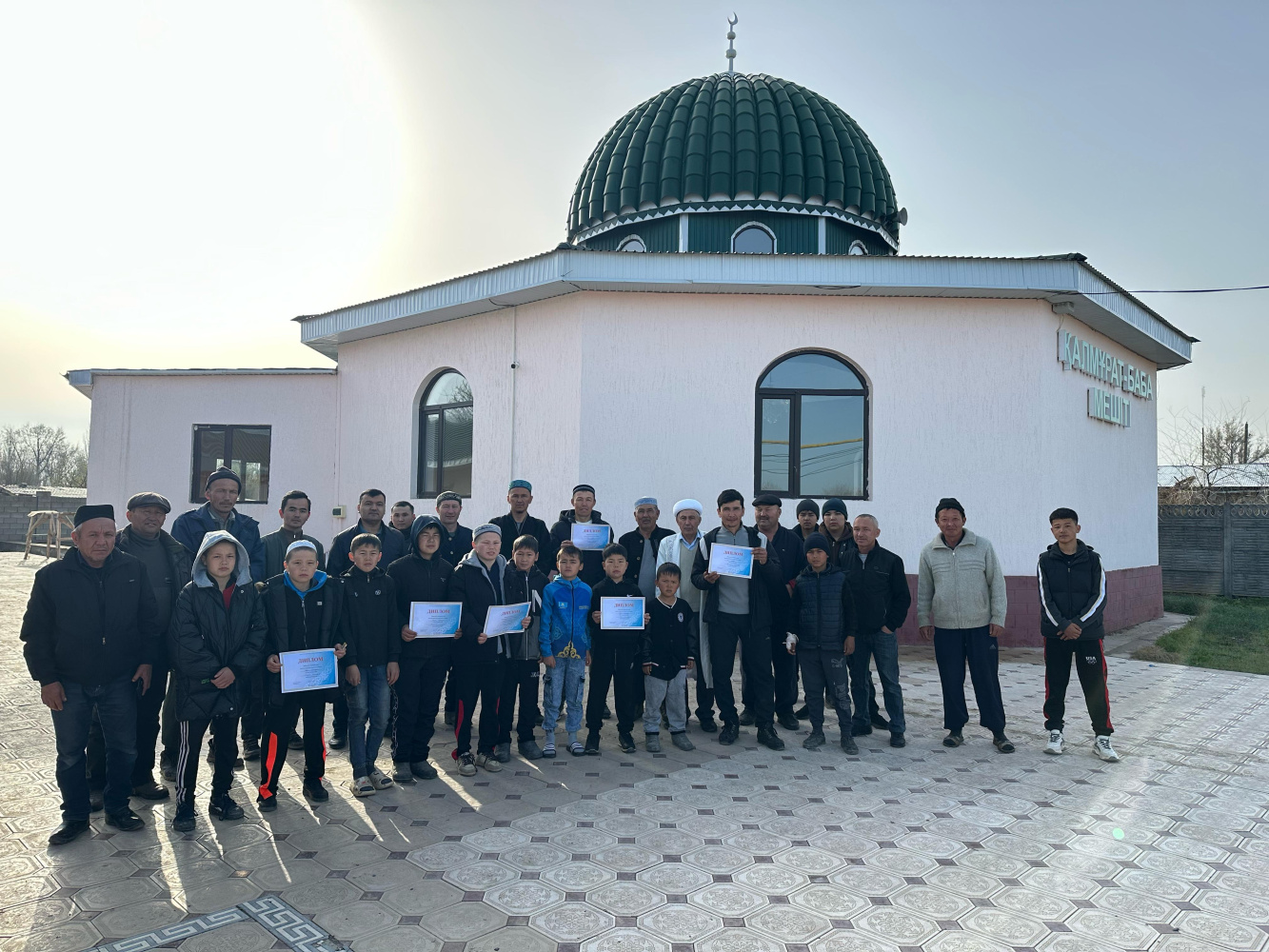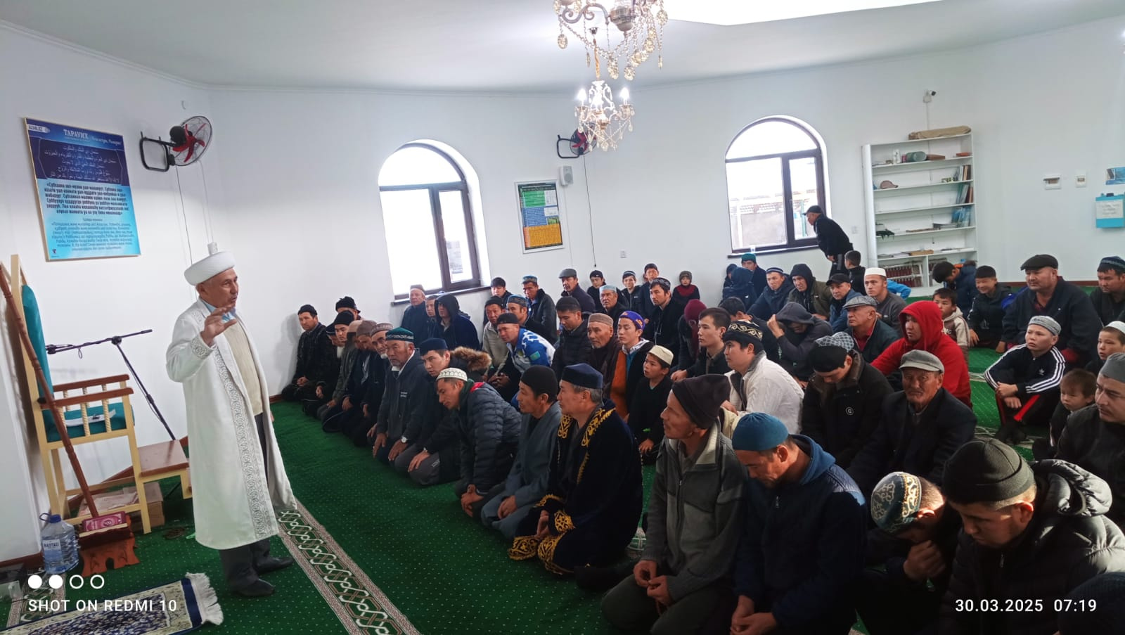 Сондай-ақ ауданға қарасты 35 мешітте 4 500-ге жуық ауыл тұрғындары мерекені құлшылықпен бастап, екі ракағат айт намазын оқыды. Намаздан соң бір-бірін құттықтап, рамазан айындағы жасаған тағат-құлшылықтарының қабыл болуын тіледі. Айтулы күн «Айт қабыл болсын!» деген құттықтау сөздерімен мерекелік көңіл күйге ұласты. Айт намазына келген жамағатқа дін мен дәстүрді насихаттау мақсатында дастархан жайылып, жастар арасында ұлттық ойындардан сайыстар ұйымдастырылды. Мешіт ақсақалдары бата беріп, ел амандығын тіледі.
