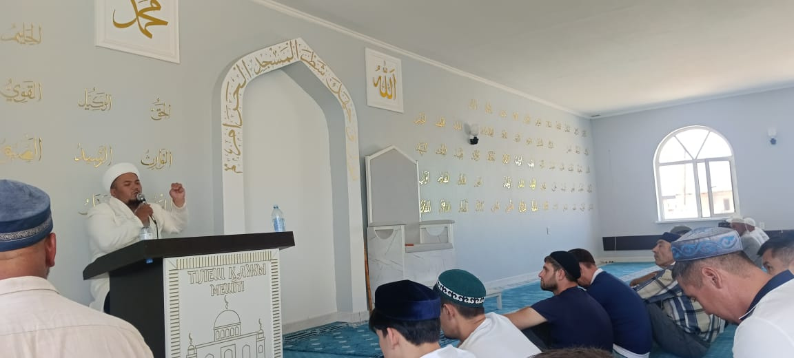 Жамбыл облысы Байзақ аудандық «Байзақ баба» мешітінің наиб имамы Бақытбек Бауыржанұлы Байзақ ауылдық «Тілеш қажы» мешітінің жамағатымен кездесіп, «Жүрек дерттері» тақырыбында насихат айтты.