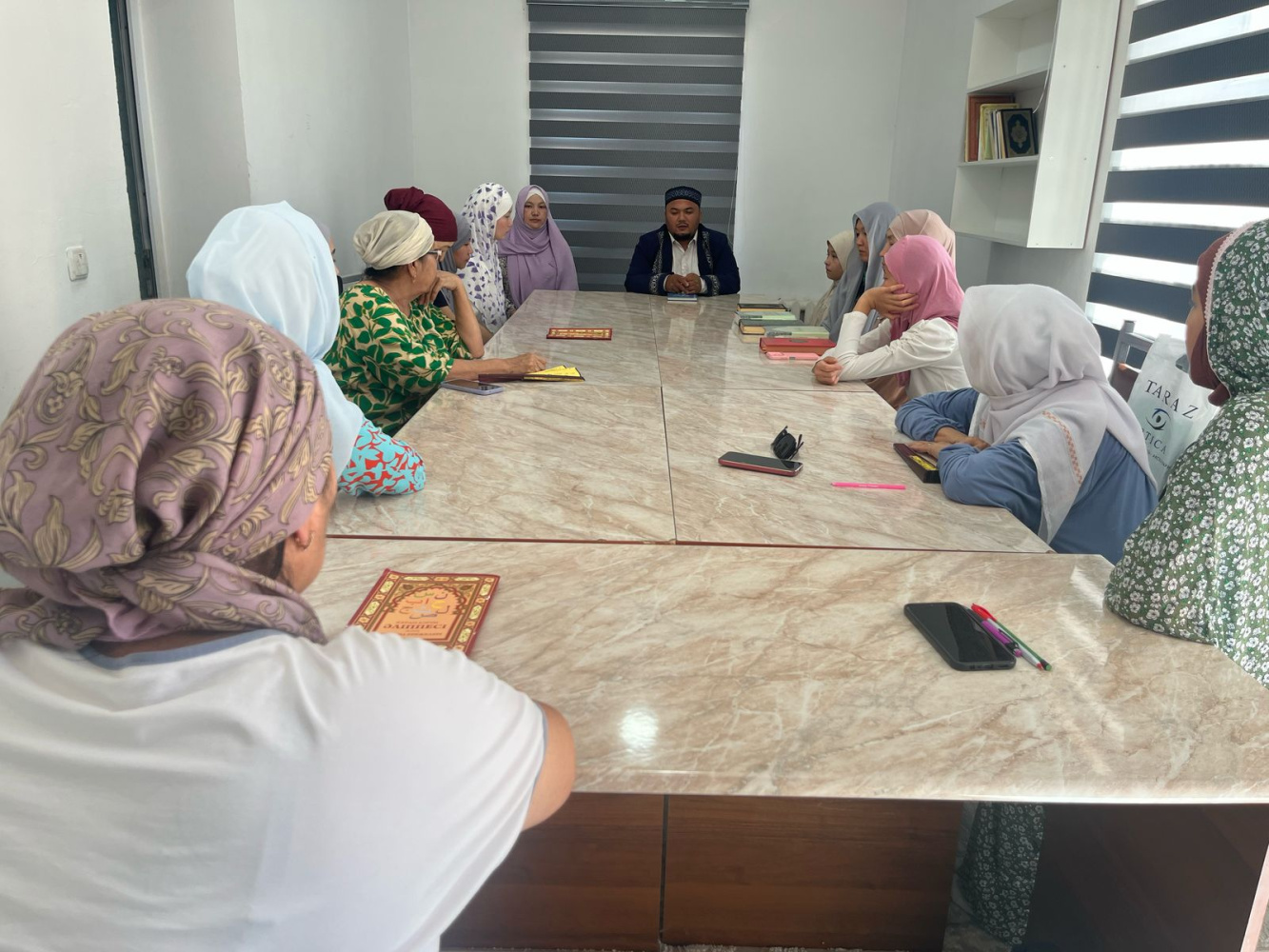 Семинарға Байзақ аудандық «Байзақ баба» мешітінің наиб имамы Бақытбек Бауыржанұлы қатысып, «Әйел отбасы шамшырағы» тақырыбында насихат айтты.