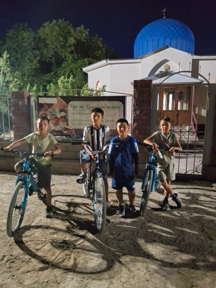 Балалардың жаздық демелыс айларында ұйымдастырылған сауат ашу курсын оқып құран жаттап жатқан шәкірттерге демеушілердің қолдауымен арнайы велосипеттер ұсынылды. Бұл сыйлық балаларды білімге ынталындыру жолында жасалған шара болып саналады.