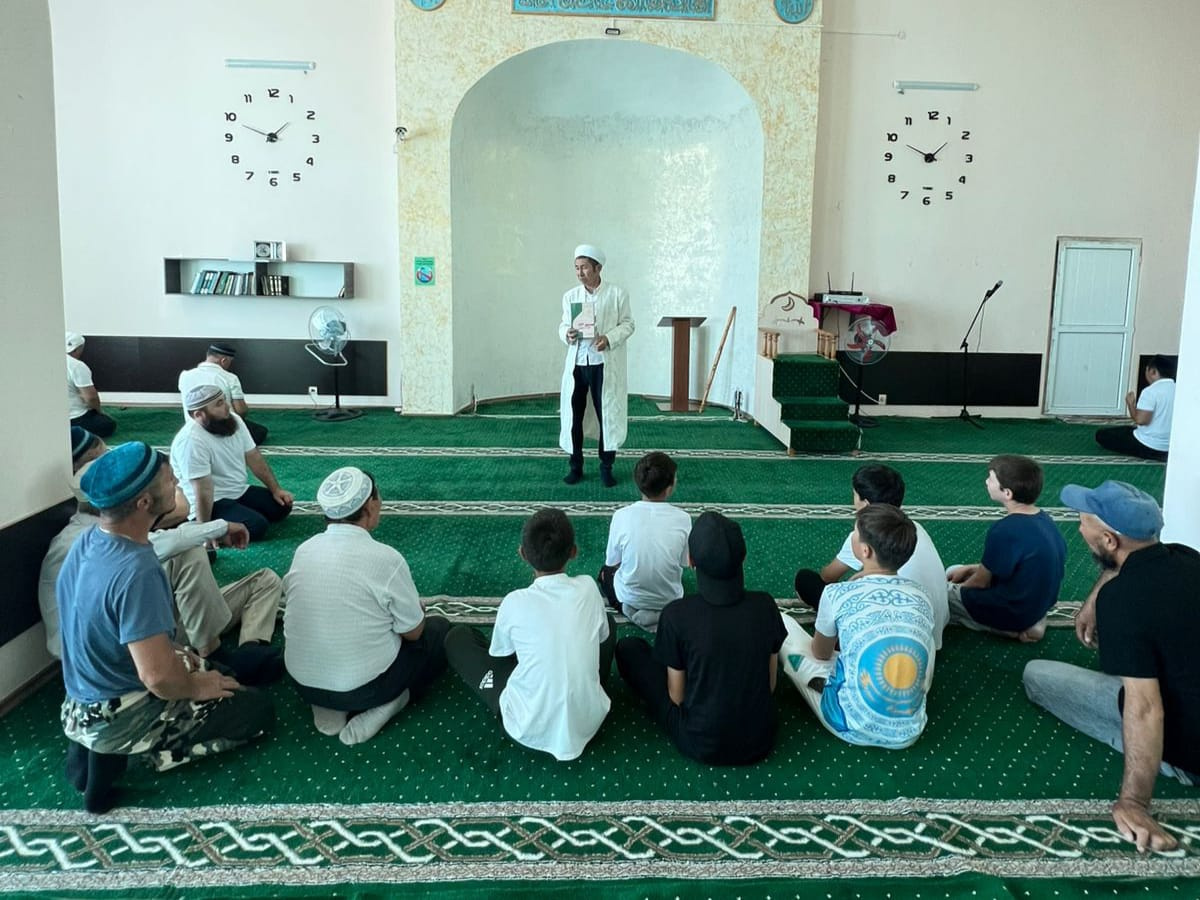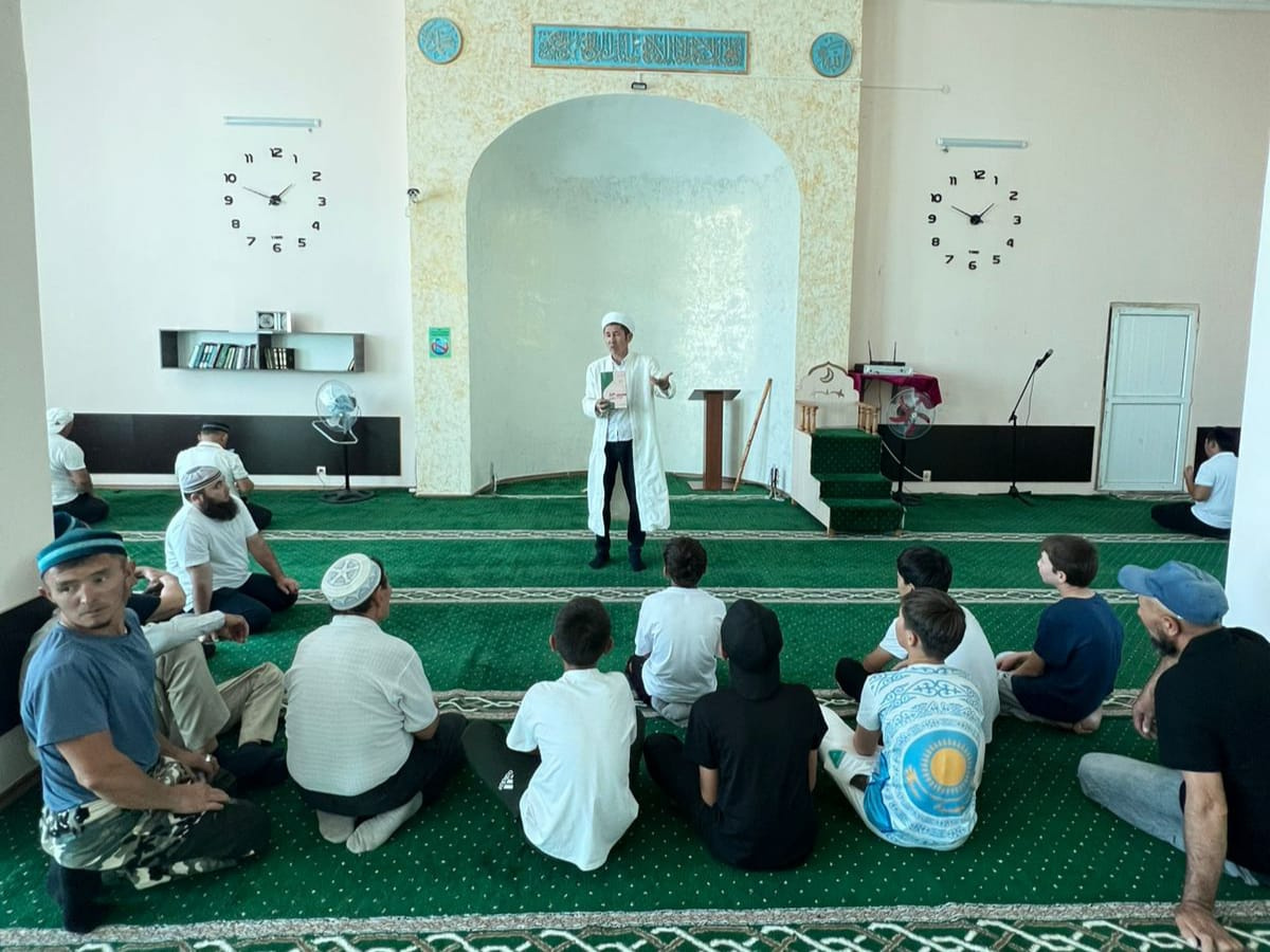 Жамбыл облысы Тұрар Рысқұлов ауданы Луговой ауылы «Әл-Хақ» мешітінің имамы Сабырханов Үмбет жамағатқа «Дін мен дәстүр» 3-ші кітабынан дәріс өтті.