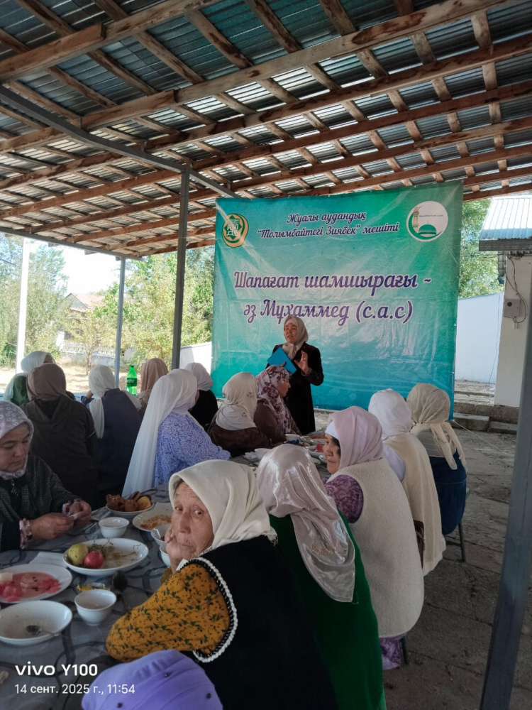 Жамбыл облысы, Жуалы ауданы, Бауыржан Момышұлы ауылдық, орталық «Толымбай тегі Зиябек» мешітінің ұстазы Клара Диханбайқызы ұйымдастыруымен Отбасы күніне орай "ШАПАҒАТ ШАМ ШЫРАҒЫ ӘЗ МҰХАММЕД" атты Мәуліт кеші өткізілді.
