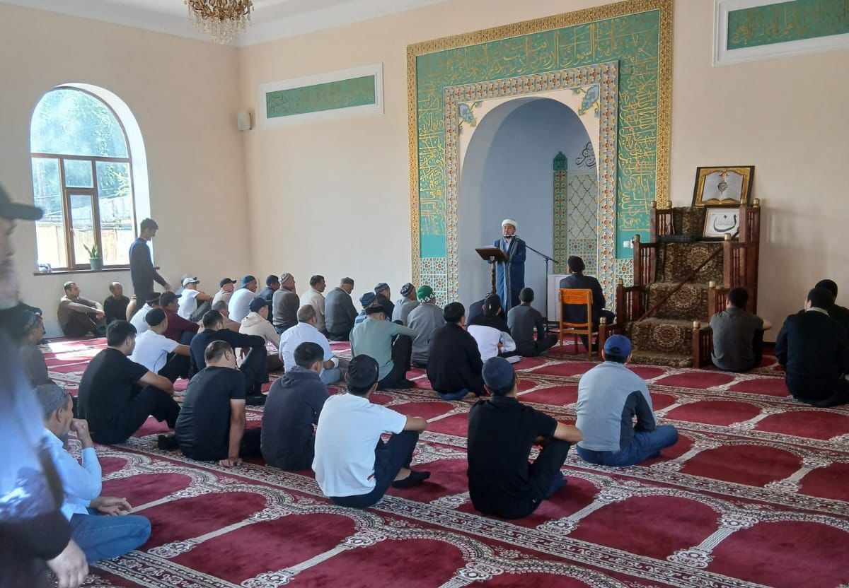 РАНТ мүшесі, Байзақ ауданыныі бас имамы Қанат Жұмағұл имам «Жақсымбет ата» мешітінде «Қоғамдағы зиянды дерттер» тақырыбында жұма насихатын айтты.