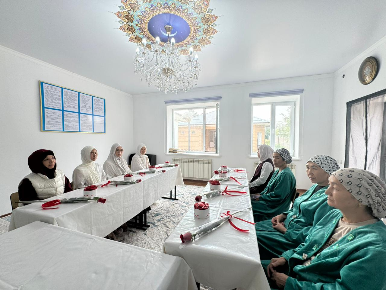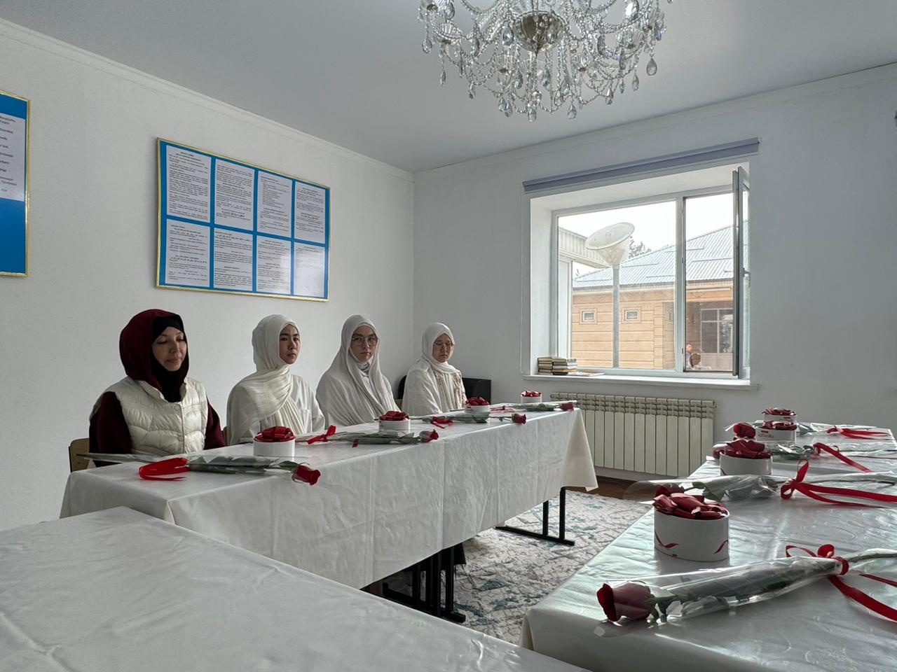 Ауданның бас имамы Алмұханбет Егізбаев әйел-қыздар ұстаздарын және мешіттің нәзік жандылар қызметкерлерін Мәуліт айымен құттықтап, сый-сияпат табыстады. Жиында Мәуліттің мұсылман жүрегіндегі орны мен Пайғамбарға (оған Алланың салауаты мен сәлемі болсын) деген сүйіспеншілікті арттырудың маңызы айтылды. Бас имам дұға жасап, әрбір отбасының амандығын, бала-шағаның бақытын, елдің тыныштығын тіледі. Алла Тағала баршамыздың жүрегімізді нұрға толтырып, отбасымызға бірлік пен береке нәсіп етсін!