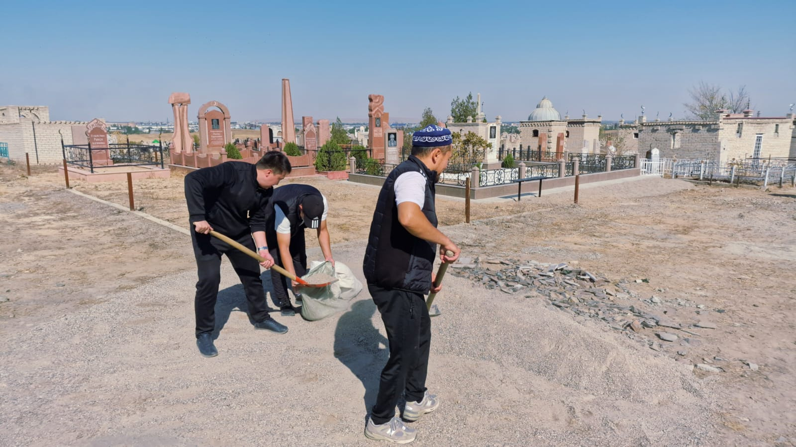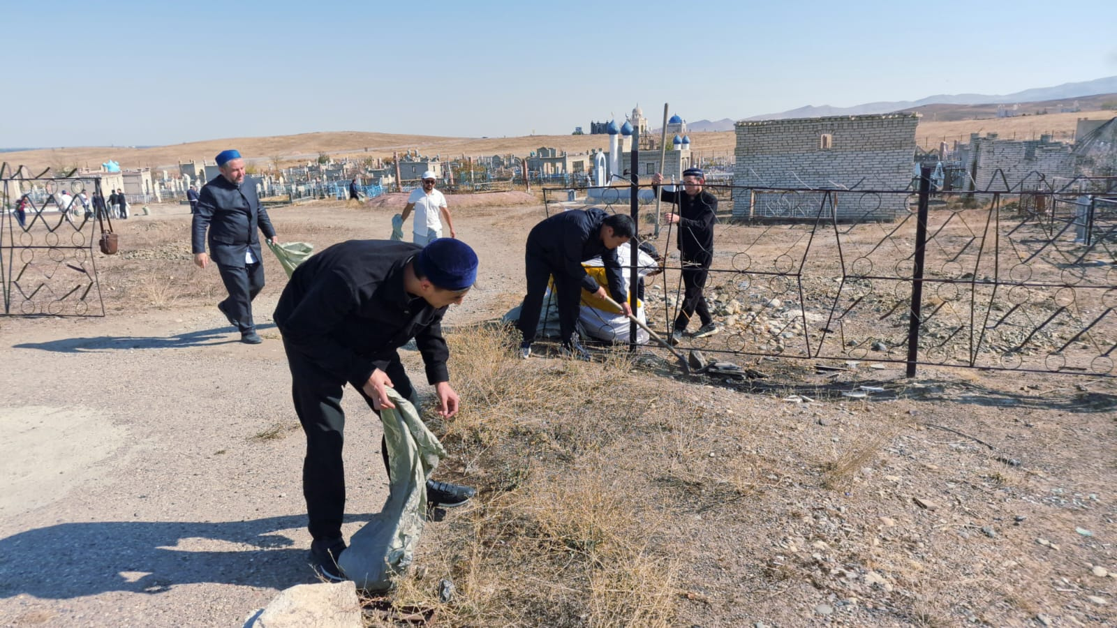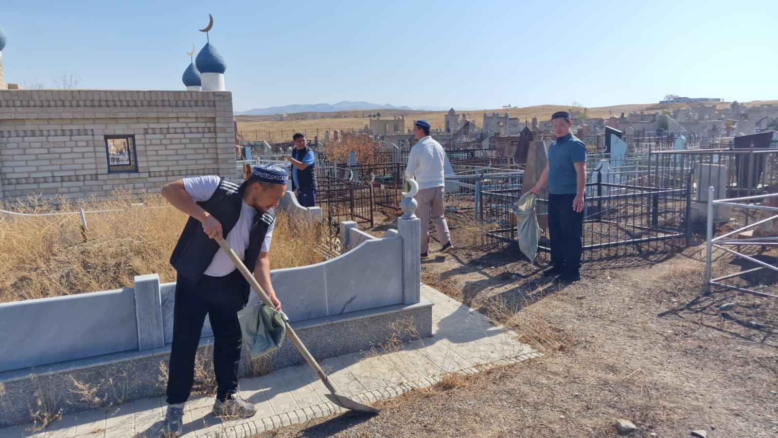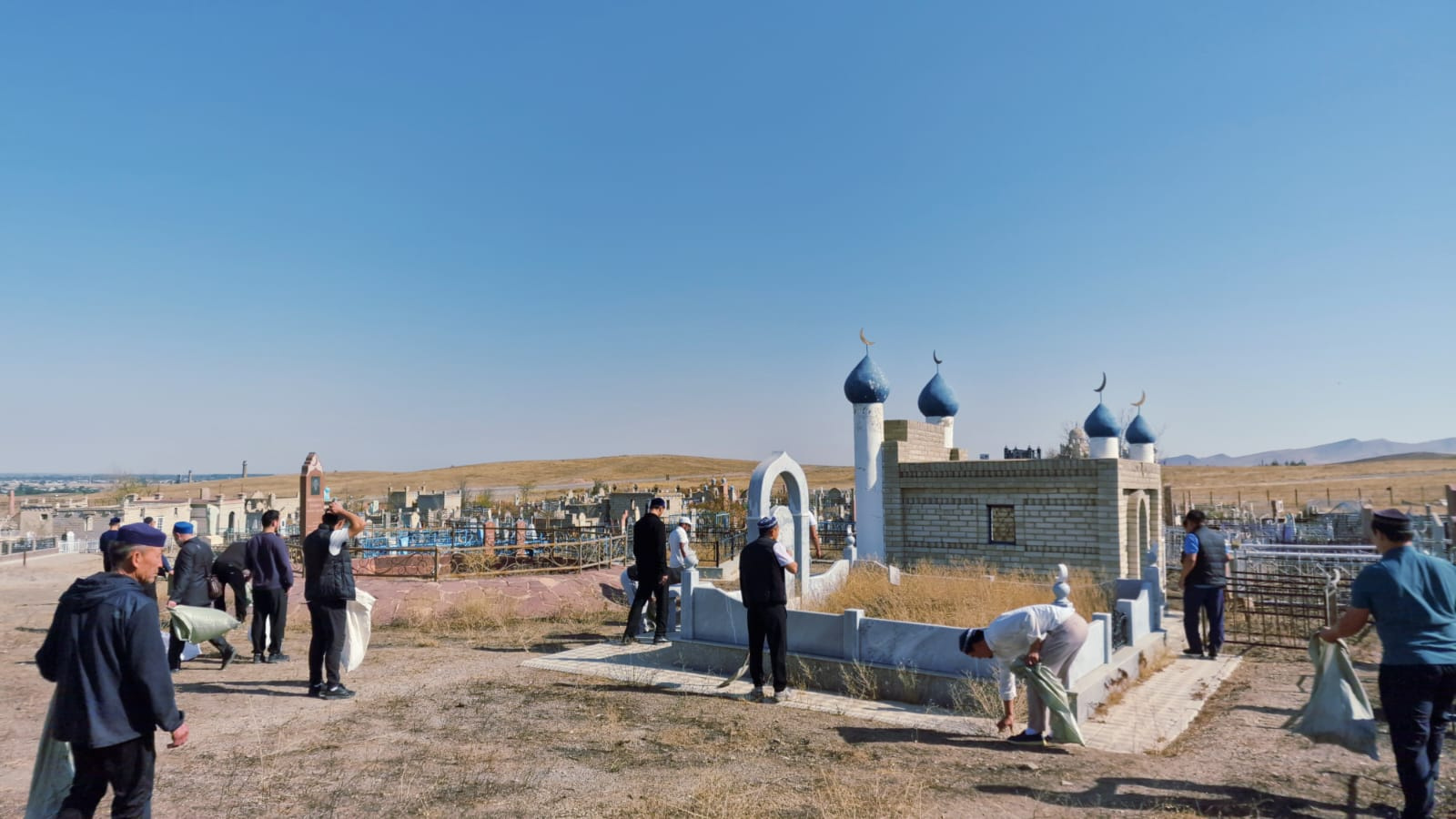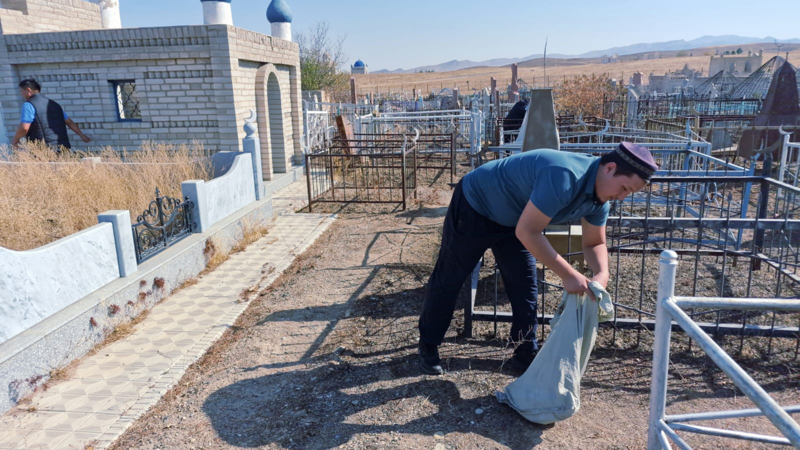 «Өткенге құрмет – тіріге міндет» атты шараға облыстық «Һибатулла Тарази» мешітінің мешіт іс басқарушысы Халид Қожахметов бастаған дін қызметкерлері атсалысты. Олар зиярат орнының айналасын қоқыстан тазартып, абаттандыруға үлес қосты.