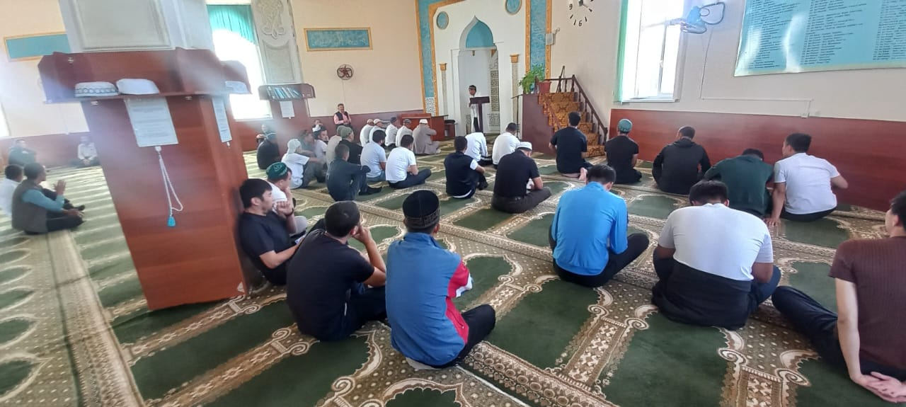Аудандық "Бәйдібек" мешітінің наиб имамы Азамат Балхожаев мешітке жиналған жамағатқа "Адал еңбек-рухани байлықтың негізі" атты тақырыпта насихат жұмыстарын жүргізді. Еңбек арқылы адам тек материалдық байлыққа ғана емес, рухани кемелдікке де жетеді. Күн сайын бір істі тындырып, бір нәтиже көрген адам өзін қажет, маңызды сезінеді.