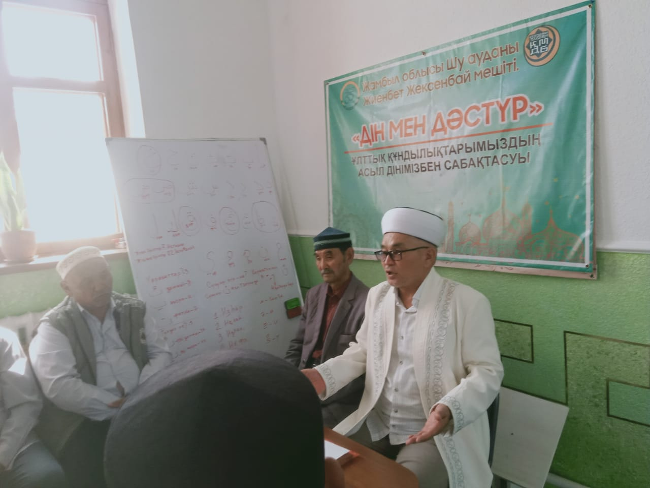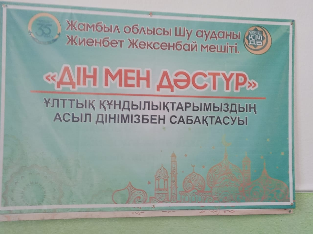 Муфтиятымыздың осы жылды «Дін мен Дәстүр жылы» деп жариялауына орай Шу қаласындағы «Жиенбет Жексенбай» мешітінде тағылымды шара өтті. Кәсіпкер Әлия Әділханқызы бастаған ізгі бастамаға ақсақалдар мен ақ жаулықты әжелер де қолдау көрсетіп, «Дін мен Дәстүр» тақырыбында үш бөлімнен тұратын мазмұнды семинар ұйымдастырылды.