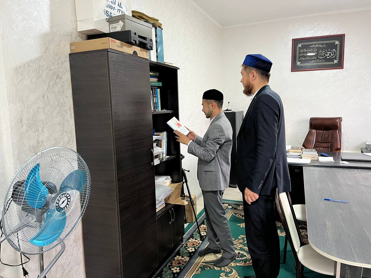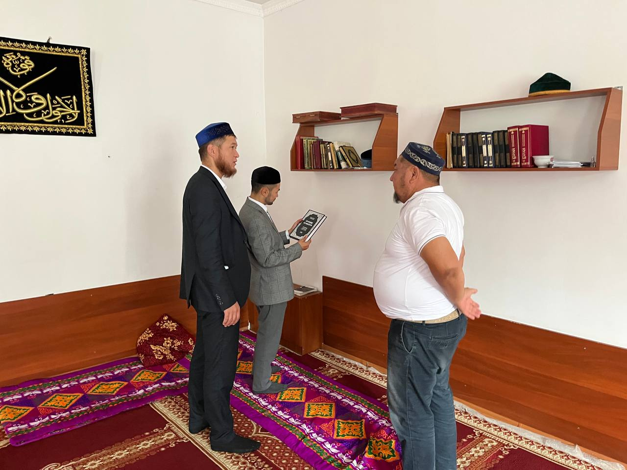 Жамбыл облысы Тұрар Рысқұлов аудандық «Сұлтан» орталық мешітінің бас имамы Қуаныш Досымжанұлы мен облыстық мешіттің наиб имамы Мұрат Нұрлан ауданға қарасты бірқатар ауыл мешіттерін аралап, мешіт сөрелеріндегі кітаптарды тексерістен өткізді.