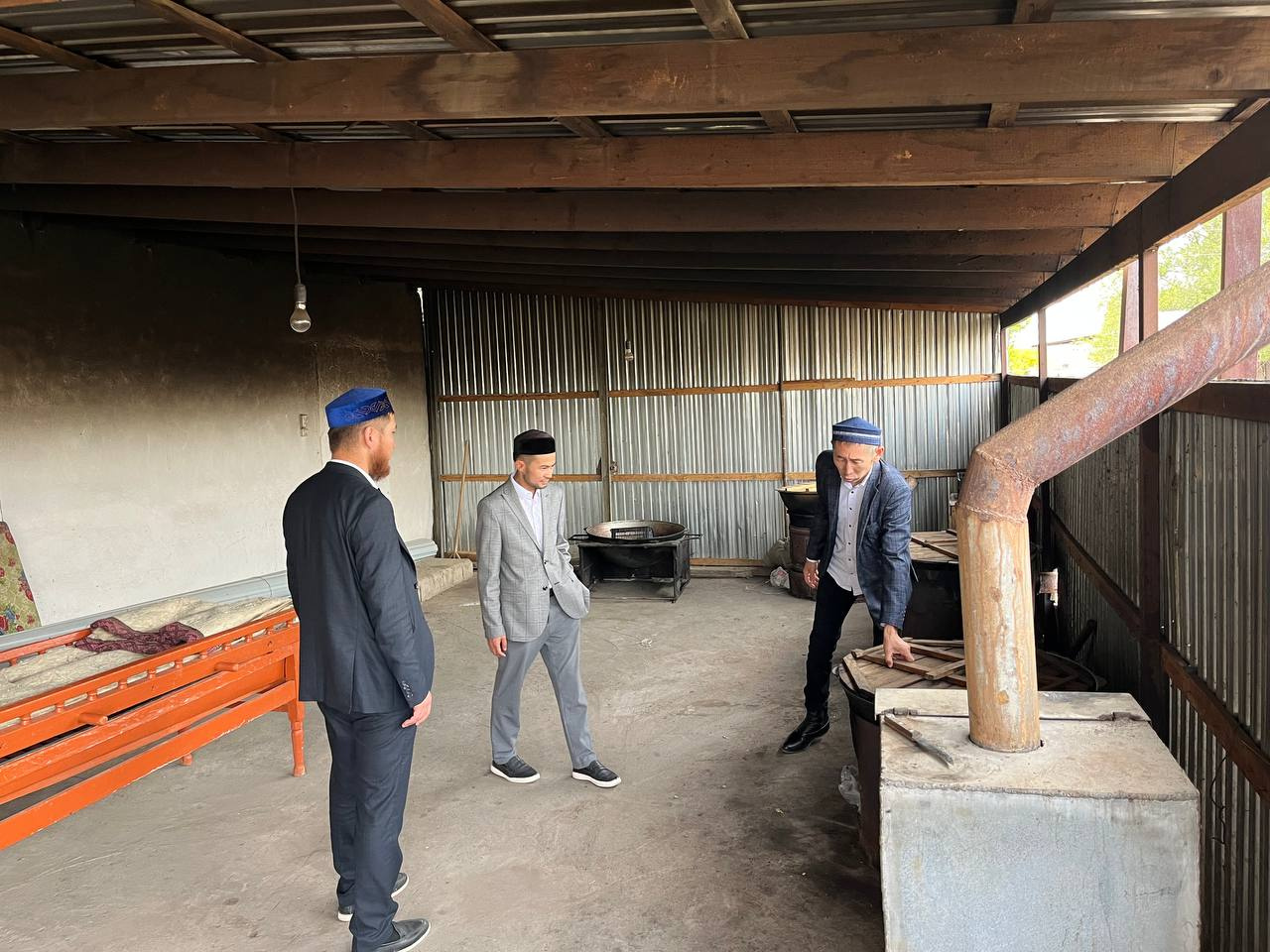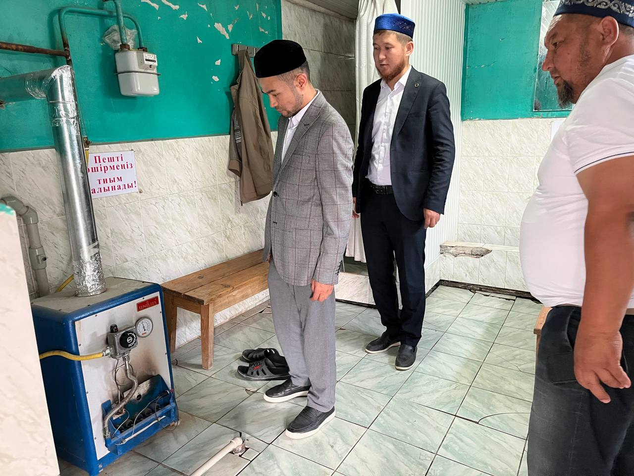Жамбыл облысы Тұрар Рысқұлов аудандық «Сұлтан» орталық мешітінің бас имамы Қуаныш Досымжанұлы және облыстық мешіттің наиб имамы Мұрат Нұрлан ауданға қарасты бірқатар ауыл мешіттерін аралап, қысқа жылыту дайындықтарын тексеріп зерделеді.