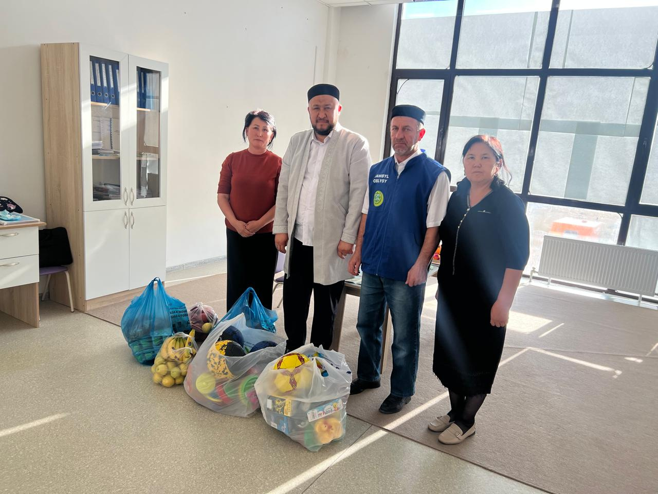 Ізгі бастаманы «Төле би» мешітінің имамы Талғат Кәрібайұлы қолға алып, мешіт ұжымы ерекше балаларға қуаныш сыйлады. Шара барысында бүлдіршіндерге тәттілер, жеміс-жидектер мен түрлі ойыншықтар табысталды.