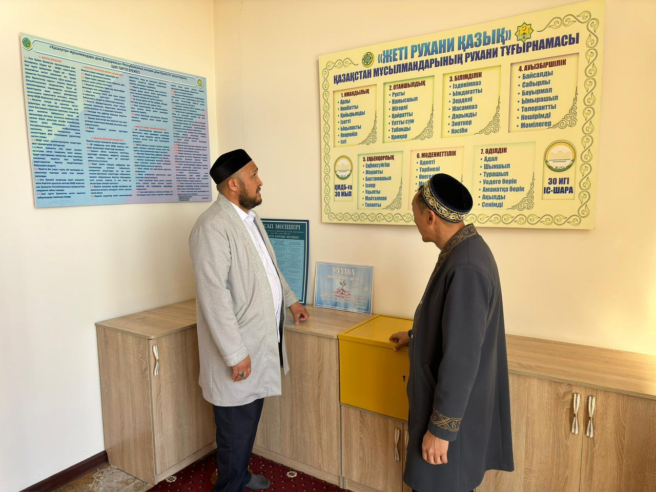 Зерделеу барысында мешіттің ішкі және сыртқы тазалығы, бейнебақылау камераларының жұмыс істеу күйі, діни әдебиеттер қоры мен мешіттің ресми құжаттары тексерілді. Сондай-ақ қыс маусымына дайындық деңгейі қаралып, газ құбырларының қауіпсіздігі мен тиімділігіне назар аударылды.