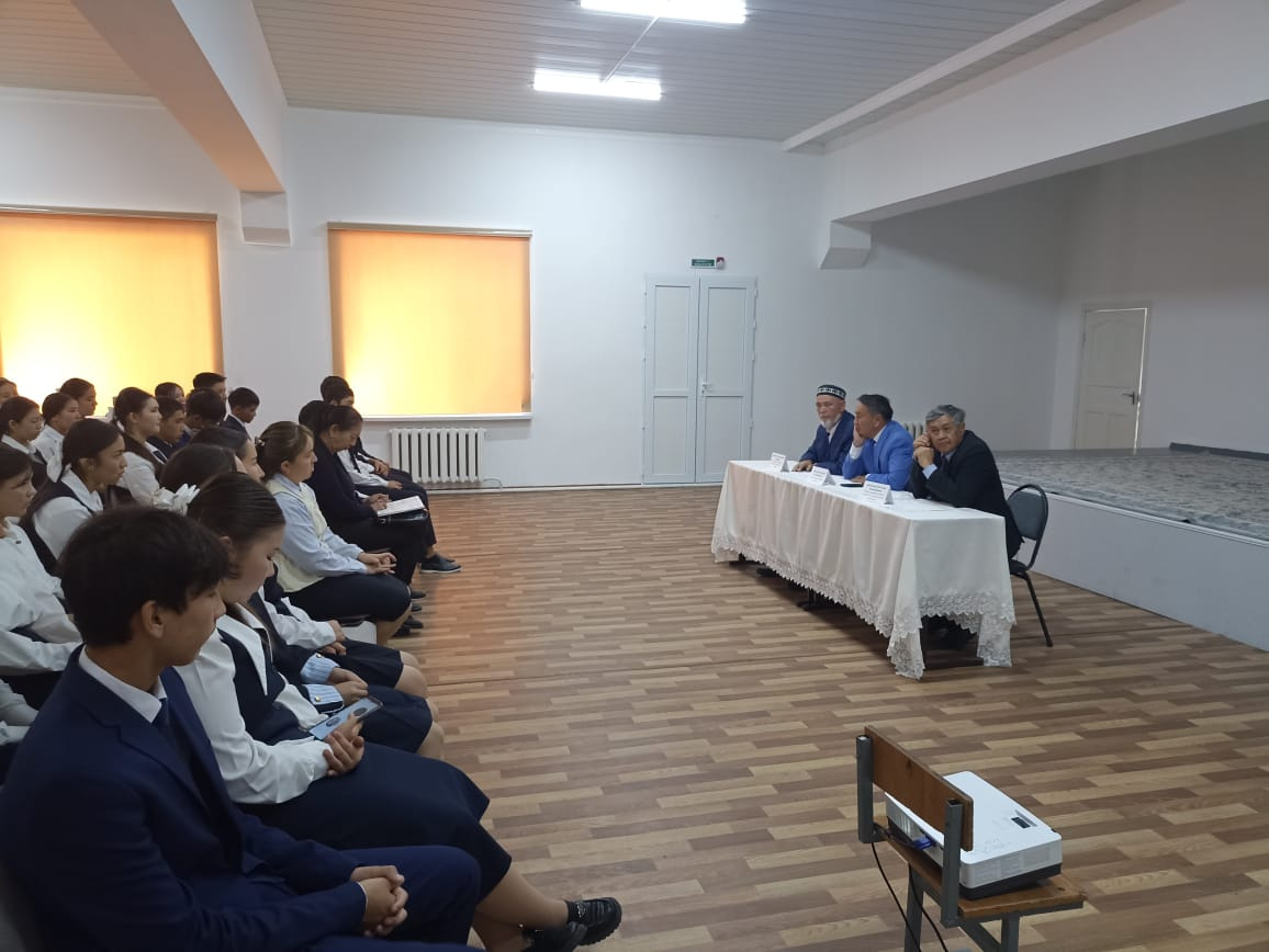 Жуалы ауданы, Бауыржан Момышұлы ауылы, №29 М. Жұмабаев атындағы мектепте «Жуалы» көпшілік мешітінің имамы Әбдірұлы Сейітқазы қажымен арнайы кездесу шарасы өтті.