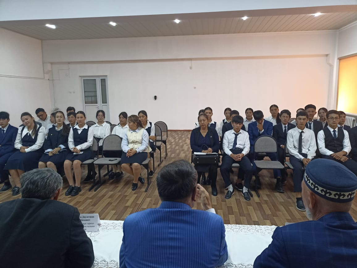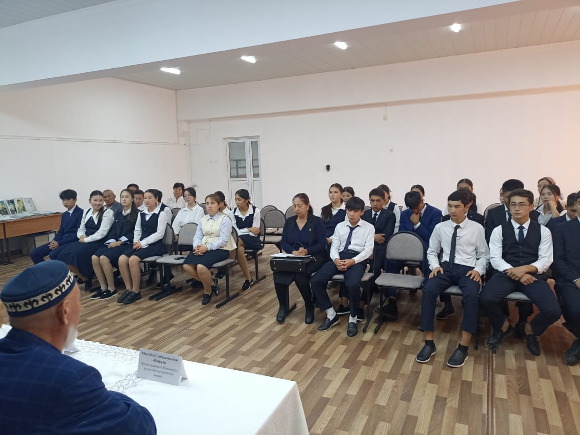 Кездесу барысында 10-сынып оқушыларымен «Қазақтың әрбір салты- тәрбие» тақырыбында әсерлі сұхбат жүргізді.