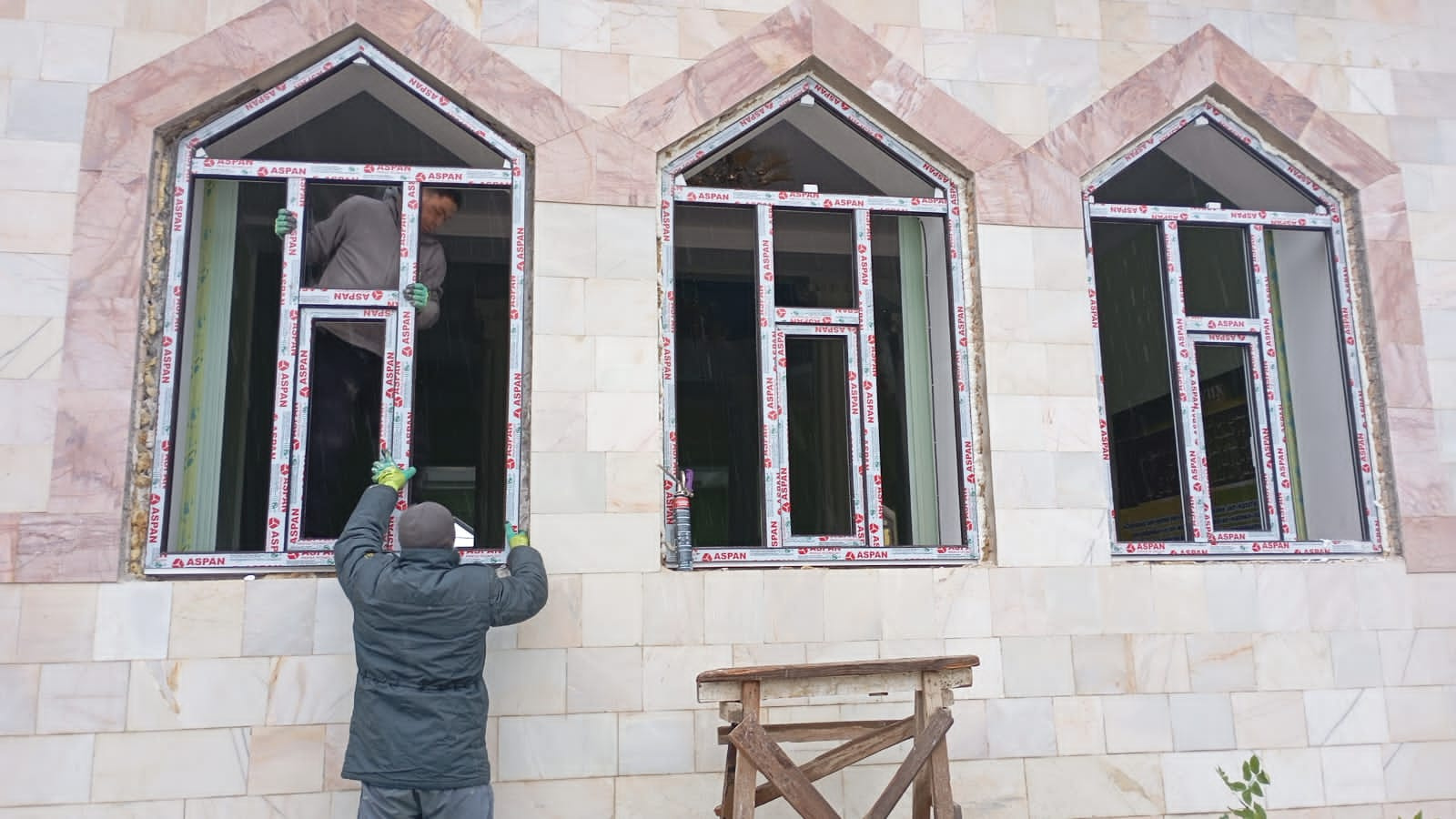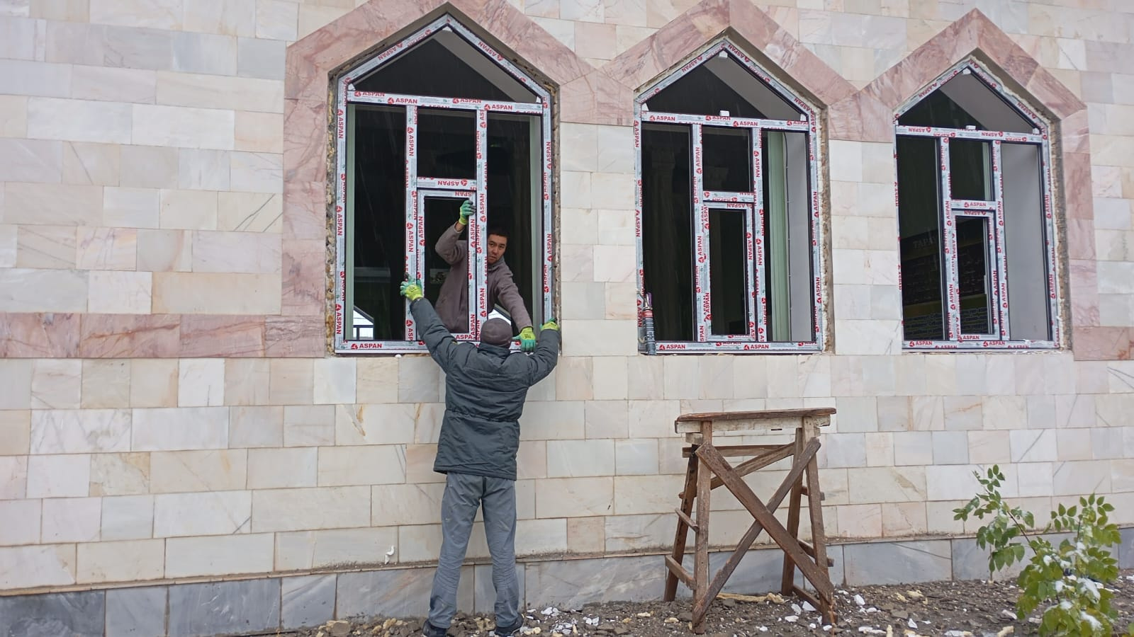 Жуалы аудандық «Толымбай тегі Зиябек» орталық мешітінің ескі терезелері орнына жаңадан пластик түріне ауыстырылды.