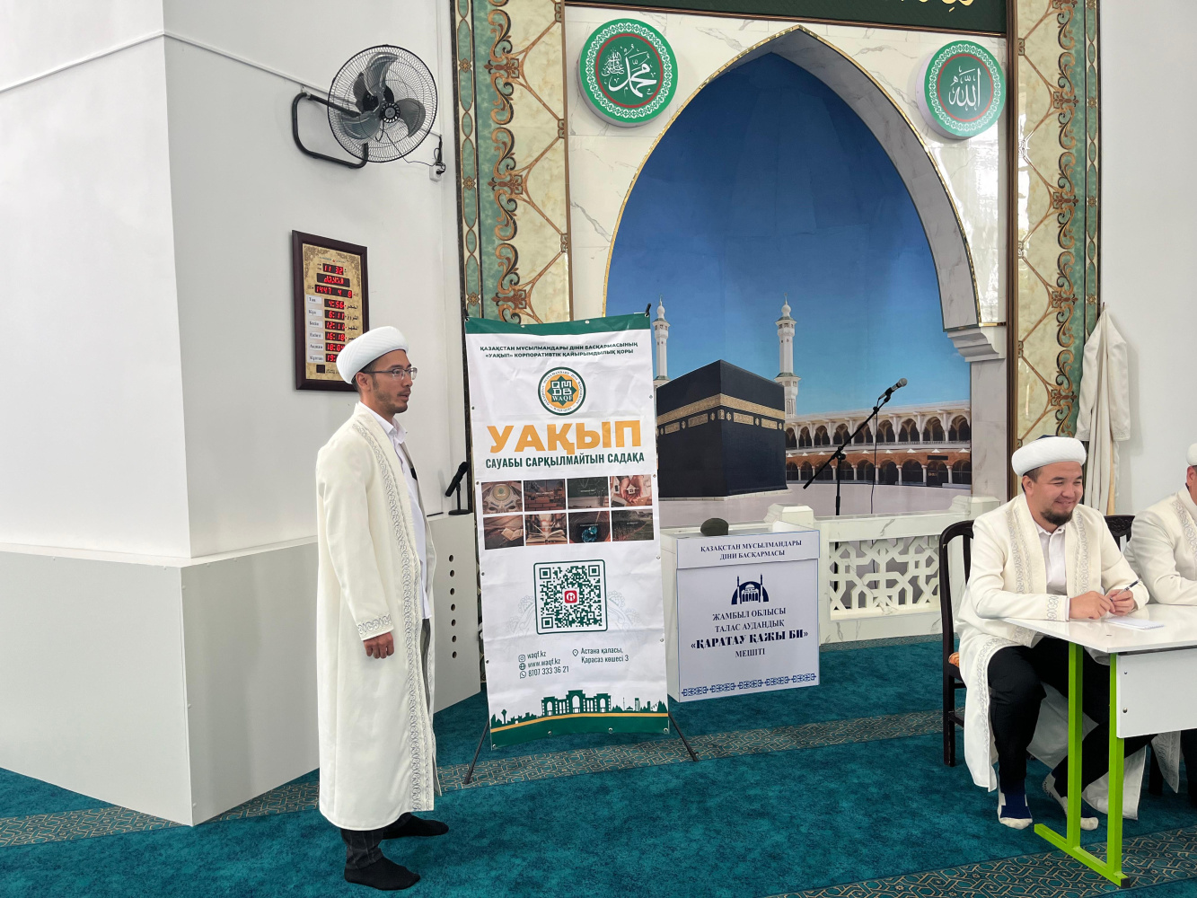 Аудандық Қаратау қажы би орталық мешітінде өткен аудандық имамдар жиналысы барысында "Әбдібай ата" мешітінің имамы Асқарбек Серікұлы уақыптың мәні мен маңызы жайлы кең көлемді уағыз-насихат жүргізді.