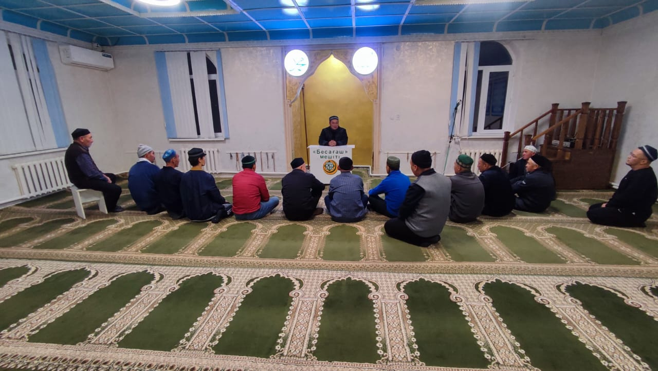 Бесағаш ауылы, "Бесағаш" мешітінде аудандық "Бәйдібек" мешітінің бас имамы Даурен Құттыбаев мешітке жиналған жамағатқа "Дін мен дәстүрдің байланысы" тақырыбында түсіндірме жұмыстарын жүргізді.