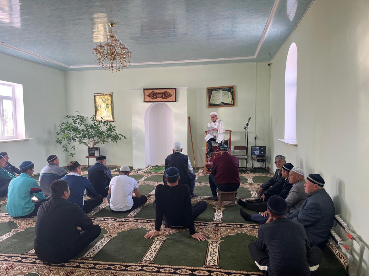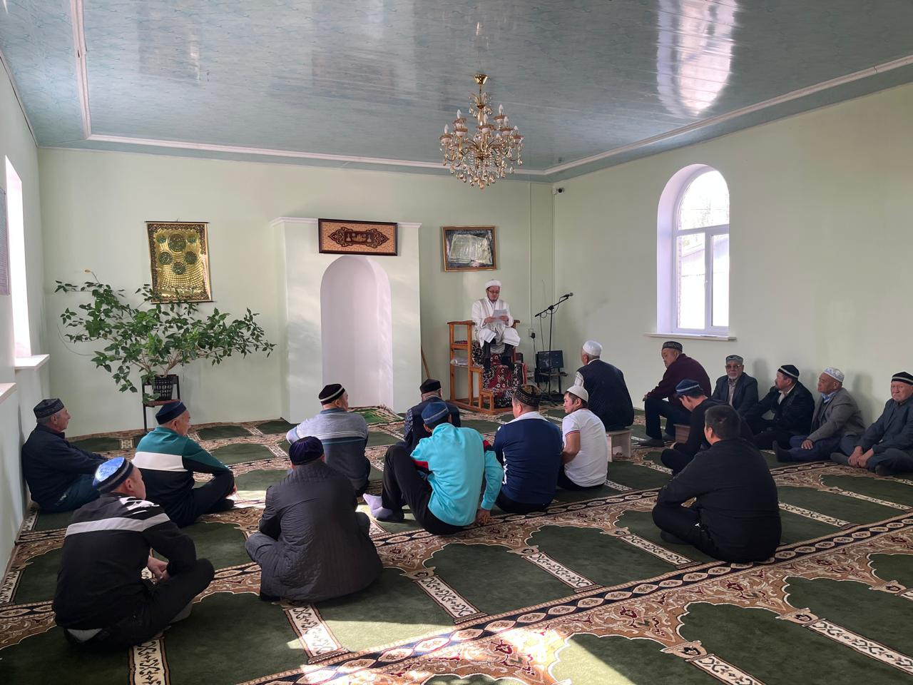 Жуалы ауданы, Дихан ауылдық «Дихан» мешітінде аудан бас имамы Тұрдыбайұлы Есет жамағатқа «Дүние – ақырет егістігі» турасында жұма тақырыбында уағыз-насихат айтты.