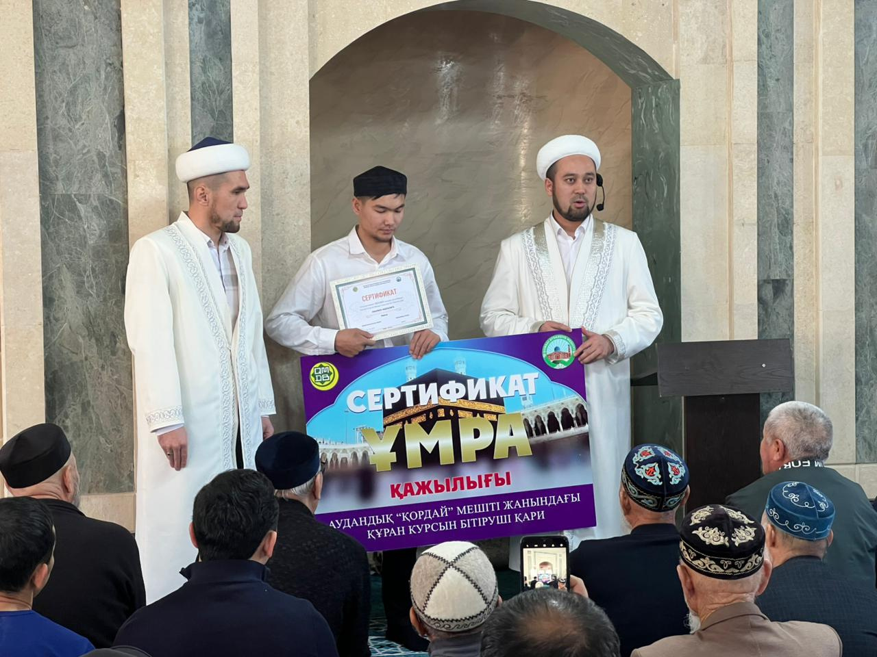 2023–2025 жылдар аралығында Құранды толық жаттаған Ақылбек Абдуалиге Ұмра сапарына жолдама сертификаты табысталды. Марапатты облыстың бас имамы Асқар Зәкіржанов салтанатты түрде табыстап, жылы лебізін білдірді.