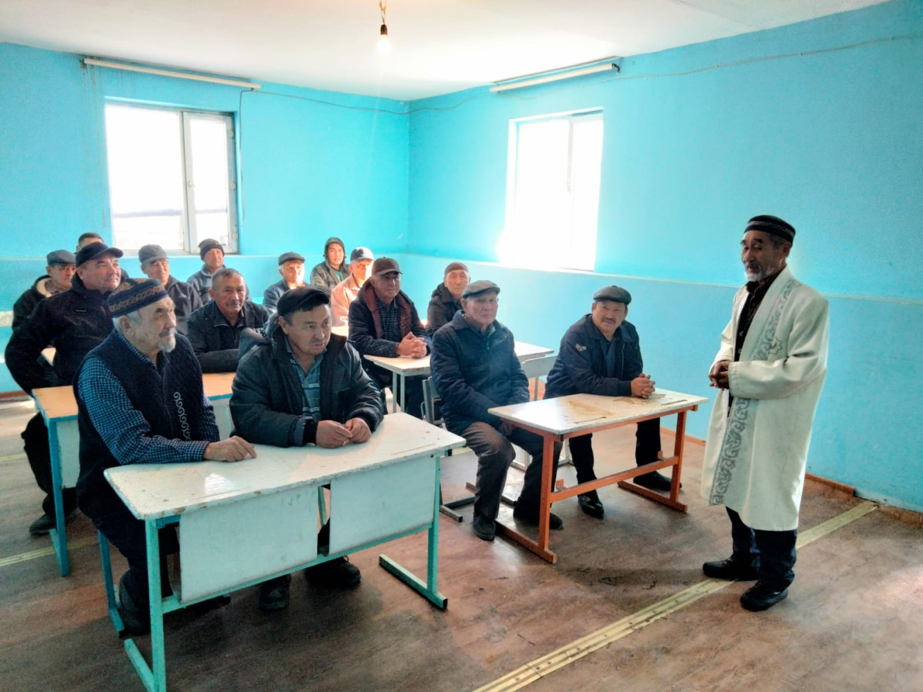 Мойынқұм ауданының Бірлік ауылындағы «Бірлік» мешітінде имам Серік Смайлов ауыл жастарына арналған «Дін мен дәстүр» тақырыбында мәнді уағыз айтты.