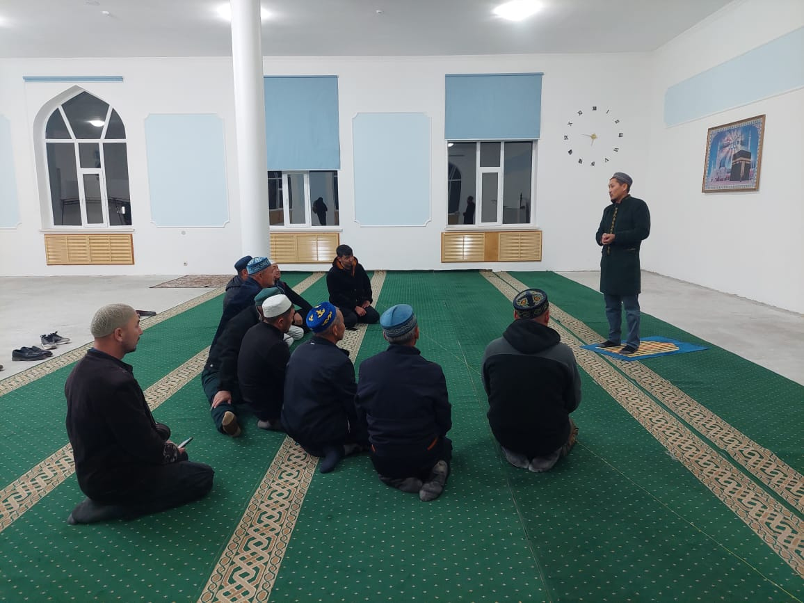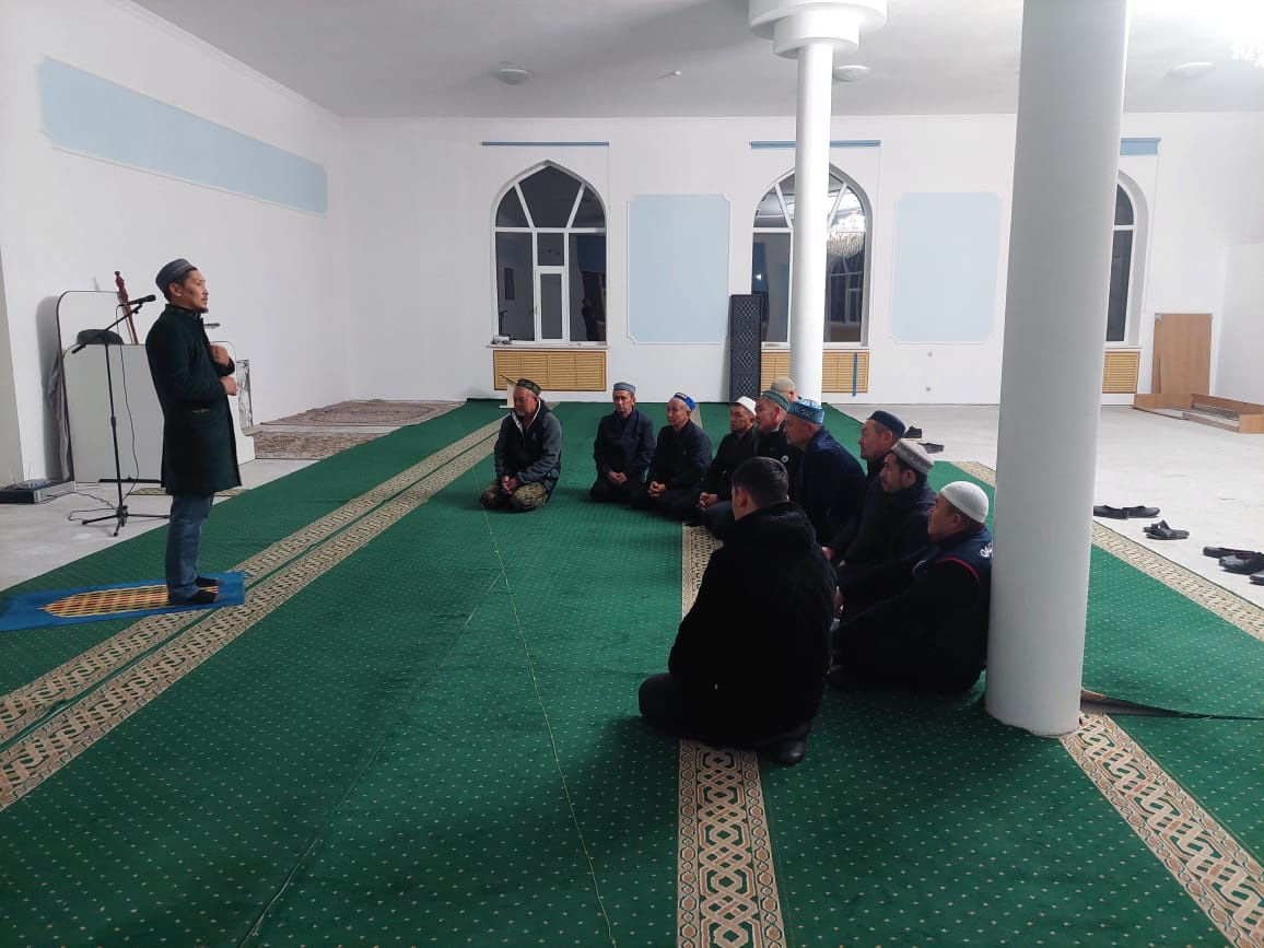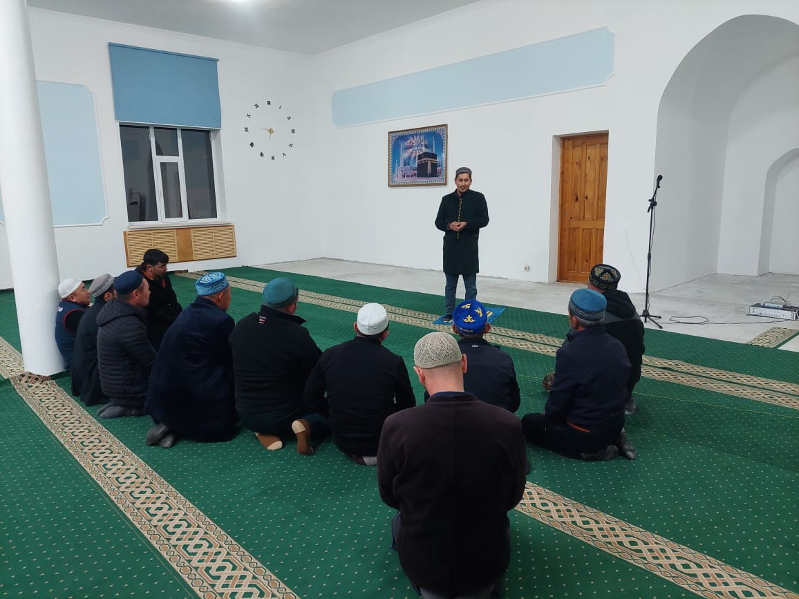 Мойынқұм ауданының Қарабөгет ауылындағы «Қарабөгет» мешітінде ауыл имамы Арсен Құлтаев жамағатқа арнап «Дін мен дәстүр» тақырыбында мазмұнды уағыз айтты.