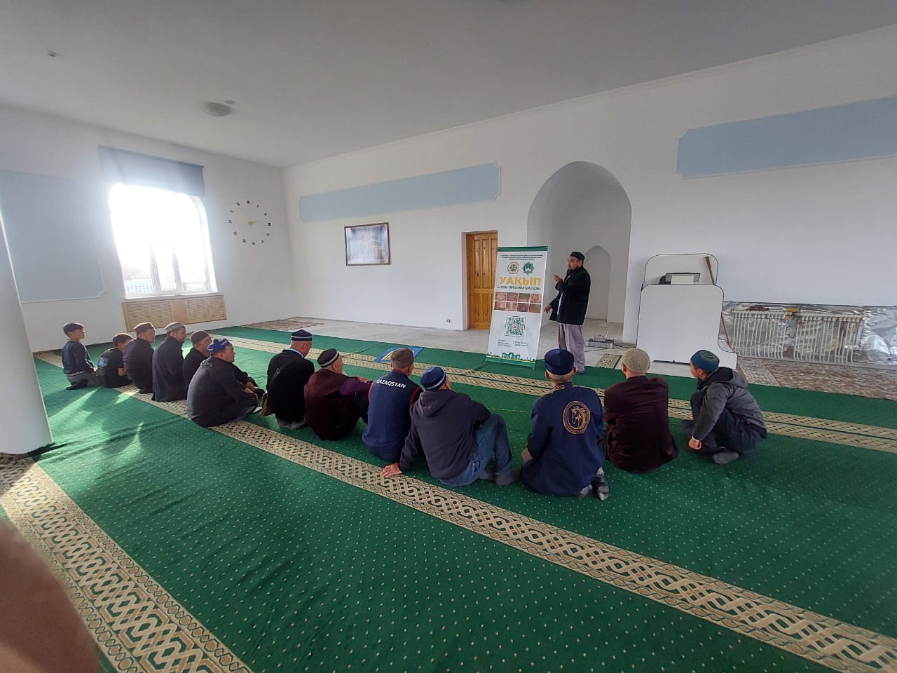«Мойынқұм» аудандық мешітінің наиб имамы Тұратбек Бердіхожаев жамағатпен кездесу өткізіп, уақыптың мәні мен маңызы туралы тағылымды әңгіме жүргізді.