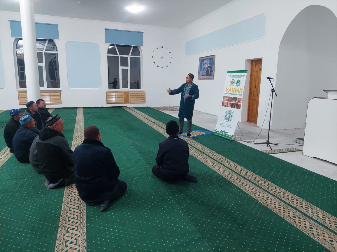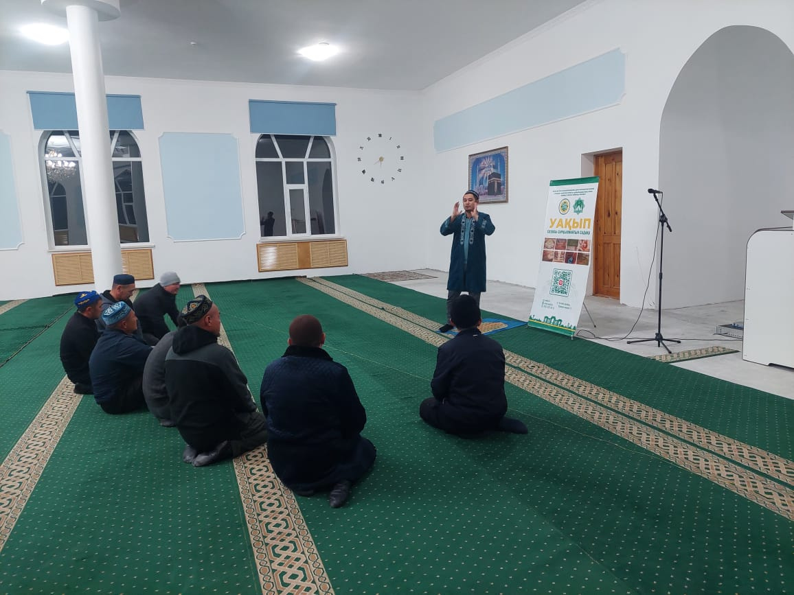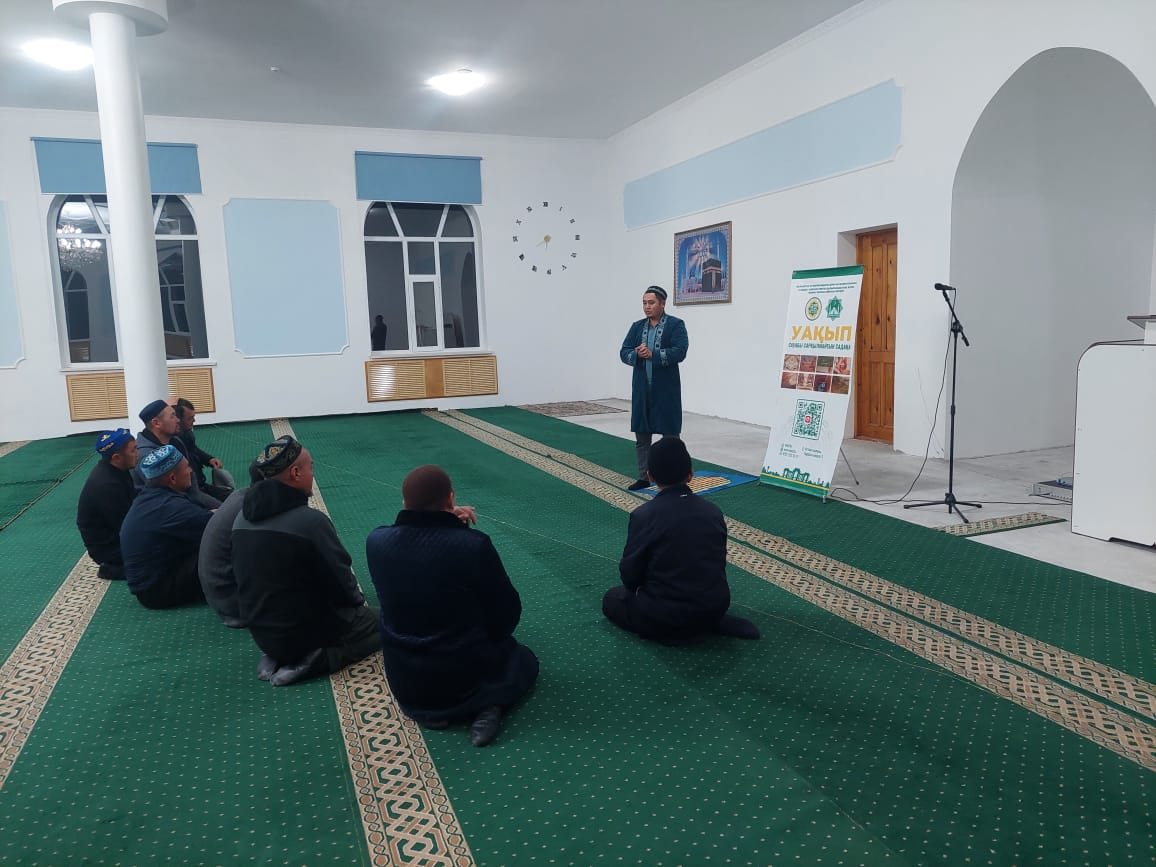 Мойынқұм ауданындағы «Мойынқұм» мешітінде уақып тақырыбында түсіндіру жиыны өтті. Шараны мешіттің бас имамы Көшкімбай Ержан жүргізіп, жамағатқа уақыптың мәні мен маңызы туралы кеңінен түсіндірді.