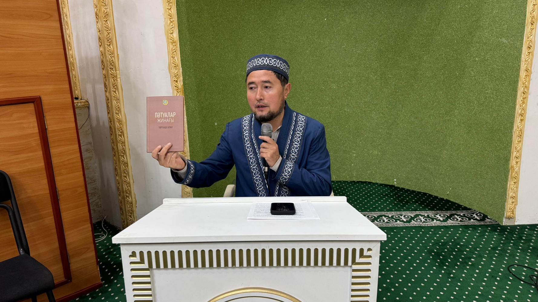 Сәрсенбінің сәтті күні мешітке жиналған жамағатқа ҚМДБ Шариғат және пәтуа бөлімі шығарған «Пәтуалар жинағы» 4-кітабын Байзақ ауданының бас имамы Қанат Әділханұлы таныстырды.