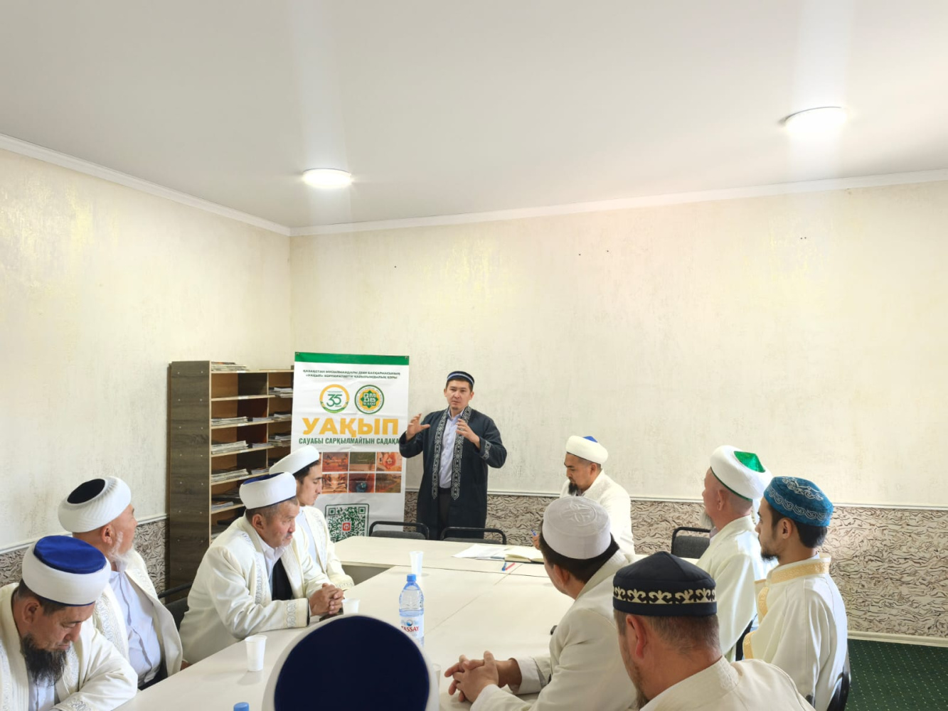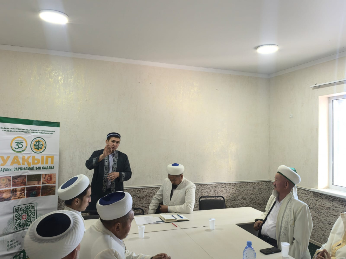 Меркі ауданы «Жүніс молда» мешітінің ұстазы Есеналиев Еламан имамдарға «Исламдағы уақып» тақырыбында семинар өткізді. Шараның мақсаты – уақып (қор) ұғымының мәнін түсіндіру, оның қоғамдағы рөлі мен қазіргі таңда дін мен қоғам игілігі үшін атқаратын маңызын насихаттау болды.